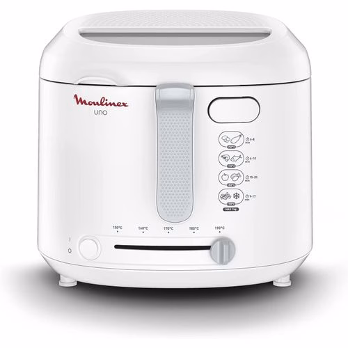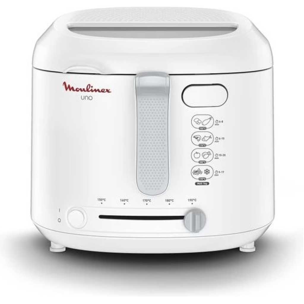 Key Features: Moulinex Uno 1.8 Litres Deep Fryer AF203127 – White Power: 1470W Capacity: 1kg Serving upto 4 people Compact Size with Foldable Handle Large View Window for Easy Monitoring Adjustable Thermostat: 150°C to 190°C Automatic Lid Opening Draining Position for less Oil before Serving Cool Touch Metallic Filter Colour: White