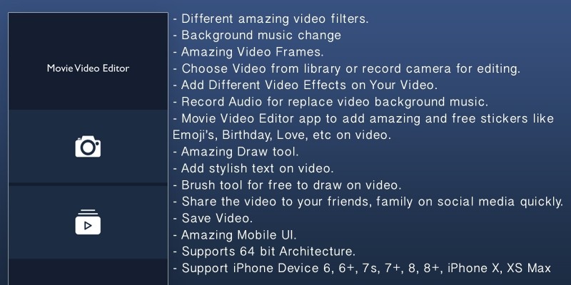 Movie Video Editor - iOS Source Code. Emojis and Stickers, Slow motion, Music, Filters, Brush and more