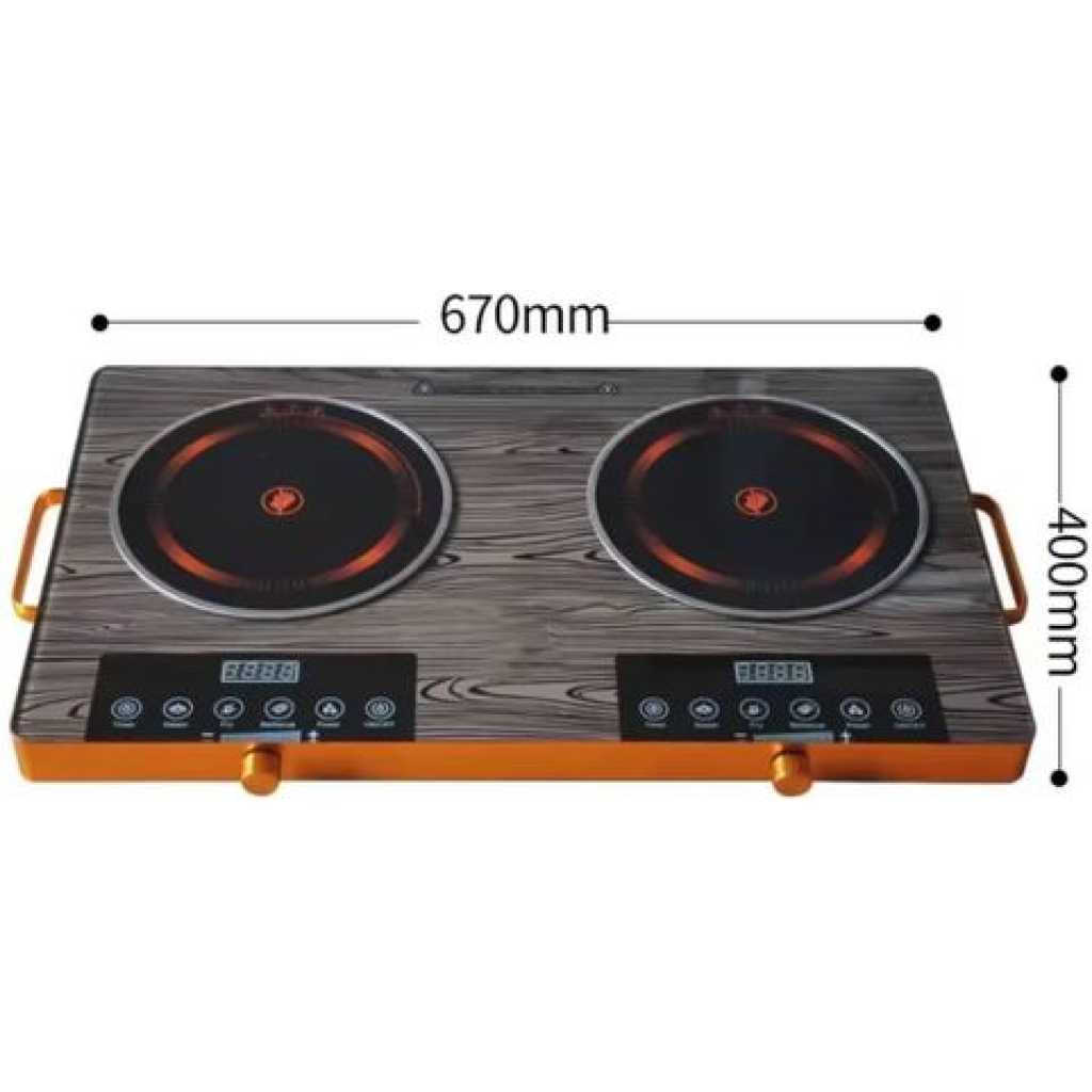 This is a modern Electric 2 Burner Ceramic Stove 3500W . In addition, it is environment-friendly with no irritating fumes. the hot plate keeps your kitchen safe from the risk of accidental fire. A slim and sleek look, luminous pilot for each plate, indicating lights to show which burner is in use, sealed solid plate design to prevent the entry of water, and smooth cooking surface for easy cleaning makes this electric dual hot plate your perfect kitchen companion. Specification: Waterproof Stainless Steel Compact & Portable Thermostat control AC 220-240V 50/60Hz Sealed hot plate desig Key Features: Twin Hotplate Infrared Cooker Touch Panel Controls Dial Temperature Controls 4 Digit LED Display 3500W Power (max.) 650degC (max.) Temperature Output Carry Handles Type: Infrared Cooker Model: 820-1 Hotplates: Twin Hotplate Surface Material: Toughened Ceramic Glass Control Panel: Touch Button Temperature Control: Dial (90 Degrees C – 650 Degrees C) Display: 4 Digit LED Preset Function: Fry, BBQ, Water, Milk, Pizza Timer: 0:00 ~ 4:00 Suitable Cookware: Iron, Stainless Steel Cookware Voltage: 220-240V 50Hz Power: 3500W Dimensions (W x H x D): 605mm x 410mm x 80mm Weight: 5.85kg