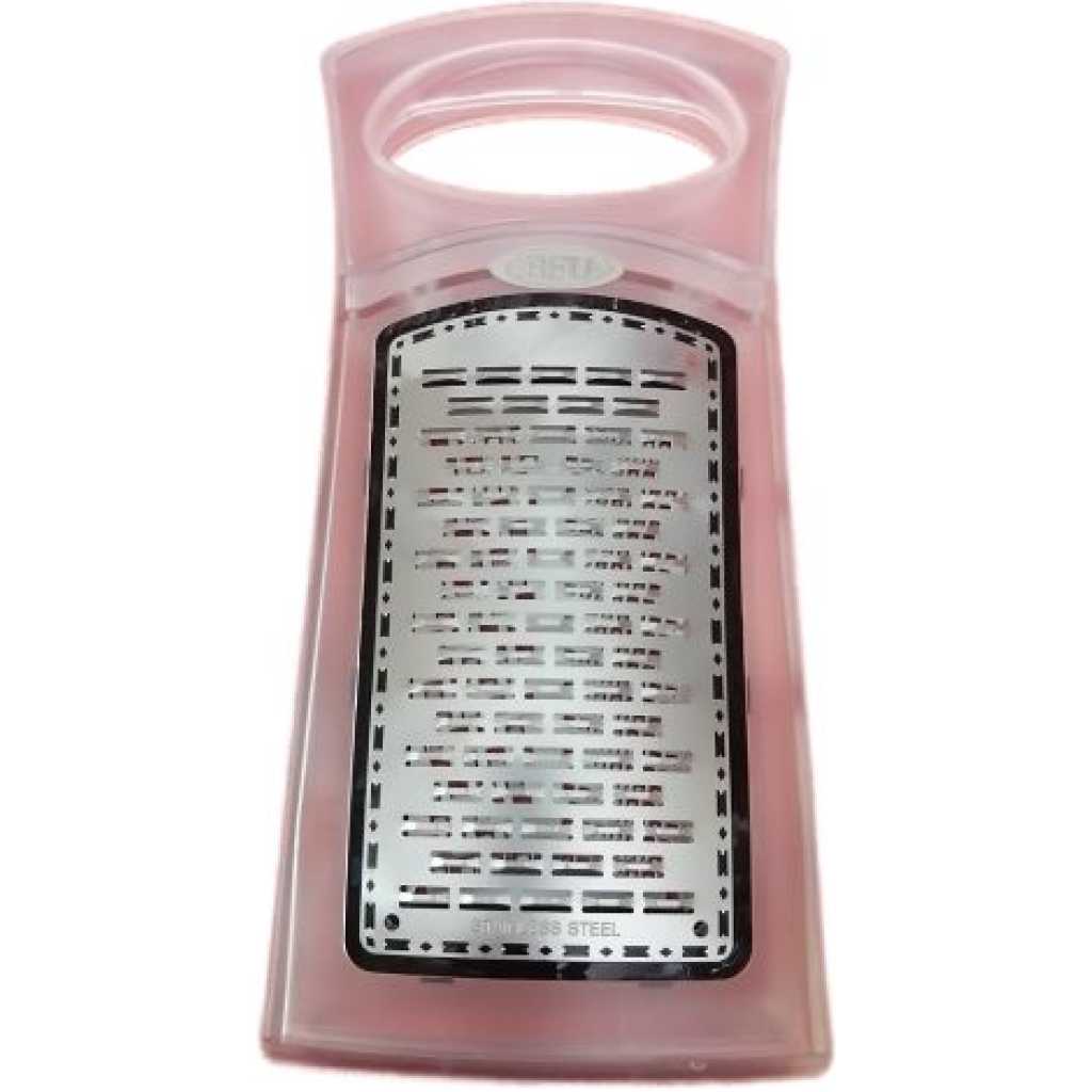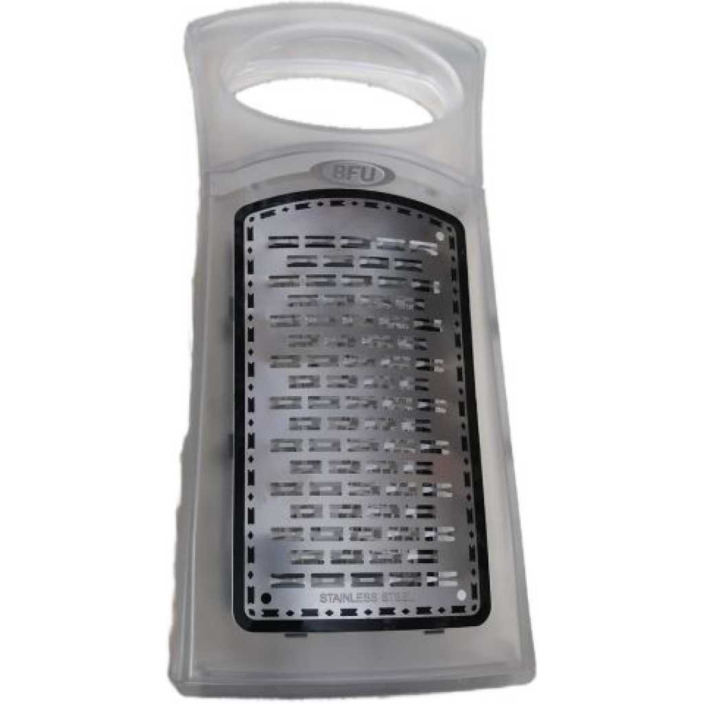 Multi-Function 3 Blade Grater For Vegetables Potato Shredder Cheese Cutter – Silver. A well-made version of a kitchen classic, this is the best box grater we’ve tried. Each side has a distinct pattern of cutters, covering a range of duties from coarse grating and fine zesting to slicing fruits and vegetables quickly and consistently. The raised teeth have been chemically etched to a sharp edge for ease of cutting; the pattern of shallow grooves on each face of the grater allows foods to release easily. Volume markings (in cups and milliliters) let you gauge quantities without having to use a measuring cup. The tall grater is solidly constructed from thick stainless steel with a wireframe for rigidity and has a comfortable non-slip handle. Dishwasher safe. Key Features: Multi-Function 3 Blade Grater For Vegetables Potato Shredder Cheese Cutter – Silver. Also suitable for shredding ingredients Soft grip handle Non-slip base Stainless steel construction Dishwasher safe Measures 5.13″ diameter x 9.25″ H Limited lifetime manufacturer’s warranty Imported Stainless steel Stainless Steel Lifetime warranty Imported Dishwasher safe 1 piece set Handles Extended Hand-Grip BPA Free – Yes
