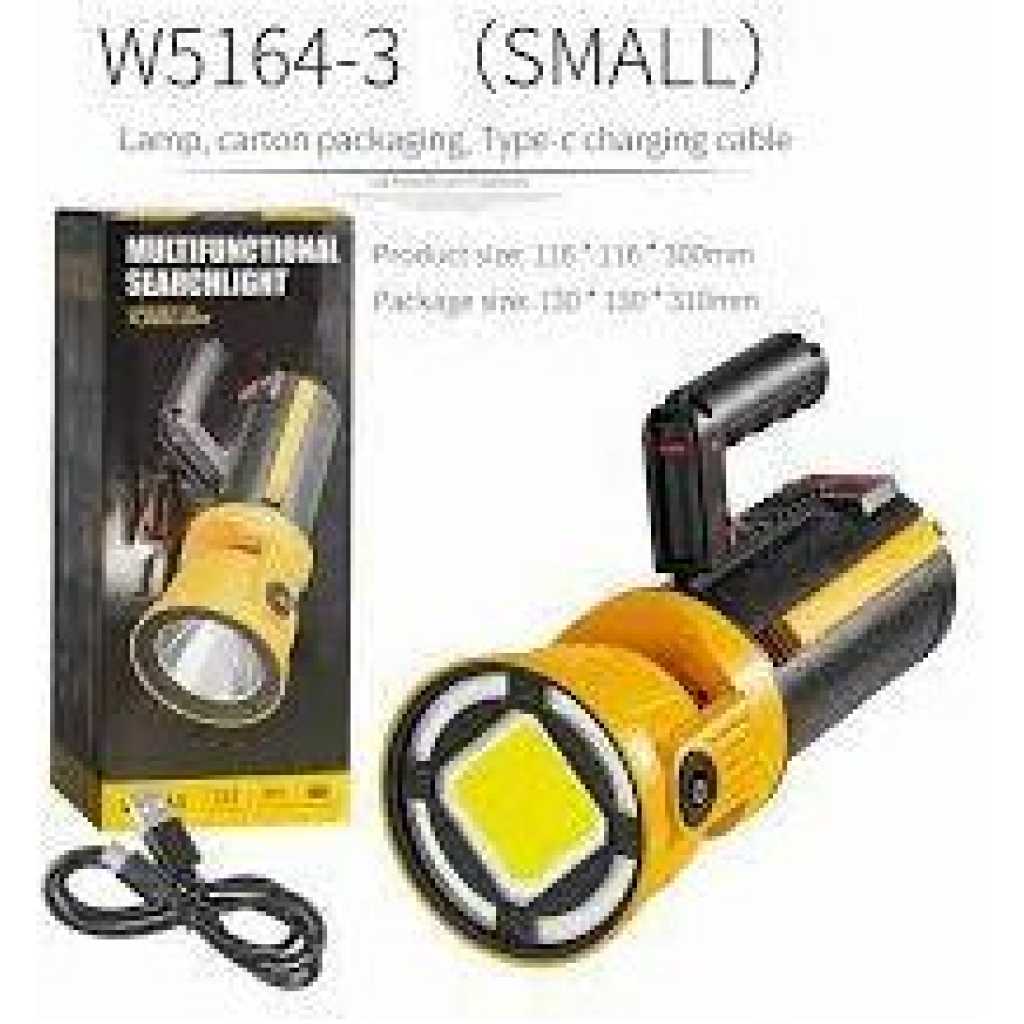 Multi-Function Portable LED Searchlight COB Support Mobile Phone Charging Hand Held Flash Torch Light Waterproof Camping -Multicolor Multifunctional Searchlight designed to offer exceptional brightness and versatility. Equipped with an LED chip, this large concentrating flashlight delivers powerful and bright light. It features multiple light modes, including strong light, weak light, and red/blue flashing, allowing you to adjust the brightness as needed. FA-W5165-1 Rechargeable Multi-Function Flashlight Portable LED Searchlight COB Handhold Lamp Support Mobile Phone Charging- SD Features: -Multifunctional searchlight, suitable for a variety of scenes, such as camping, fishing, cycling, etc -Folding tripod can be easily transformed into a working light; portable hanging design can also be used as a camping light; the tail also has a reading light. -IP64 life waterproof, can also be used normally on rainy days -Power bank function, can respond to emergency situations -Power display. 4 power display, keep track of the remaining power FOLDING BRACKET DESIGN -Tripod folding support, quick opening, second changing work light COMFORTABLE FEEL -Conforming to human body mechanical structure CONVENIENT HOOK DESIGN -It can be conveniently hung on branches, poles, etc, and can be hooked by fingers rear reading lamp -Low-power warm light, low power consumption, no eye injury, longer endurance 180 ROTATION OF LAMP CAP -The rotating lamp head can rotate 180 back and forth Anti-slip ABS handle supports two installation modes, and the installation mode can be selected according to the needs What’s in the box 1x Rechargeable Multi-Function Flashlight Portable LED Searchlight- SD