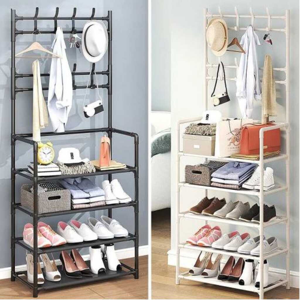 Key Features: Easy to assembly. – Specially design for indoor use. – Designed into horizontal and vertical stretching for more clothes. – A room-saving clothes rack is very important for the household with limit balcony room. – Structure with iron pipe material, it offers better bearing capacity and a long lifespan. Features: STABLE & DURABLE. Made of iron metal, more sturdy and load-bearing better and stable. 3-IN-1 ORGANIZER. A perfect combo of shelf, coat rack and shoe storage bench; So you can hang your clothes, bags, umbrellas, and store your shoes, storage boxes or handbags. It will store many things in limited space EASY ASSEMBLY & DISASSEMBLY. This free standing Coat Rack Shoe Bench is simply constructed. With the help of instruction manual and tool, you can assemble the whole unit easily UNIQUE DESIGN. It is carefully crafted to fit all spaces, whether it?s a entryway, hall, foyer, hallway, bedroom, mud room or office Specifications: Product Name: 4-Tier Coat RacK Material: Metal Color: Black/White Size: 23.62 x 10.23 x 60.23″ Tier: 4 tier Package Included: 1x Coat Rack