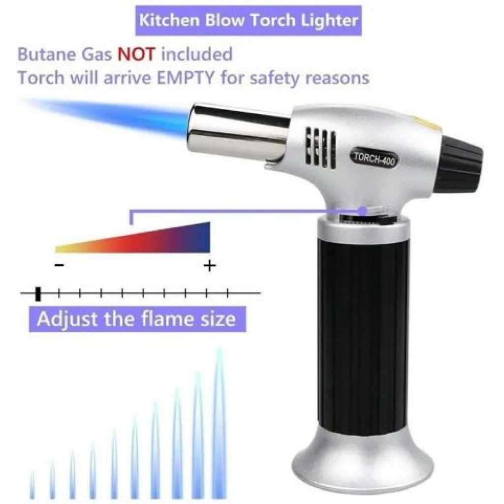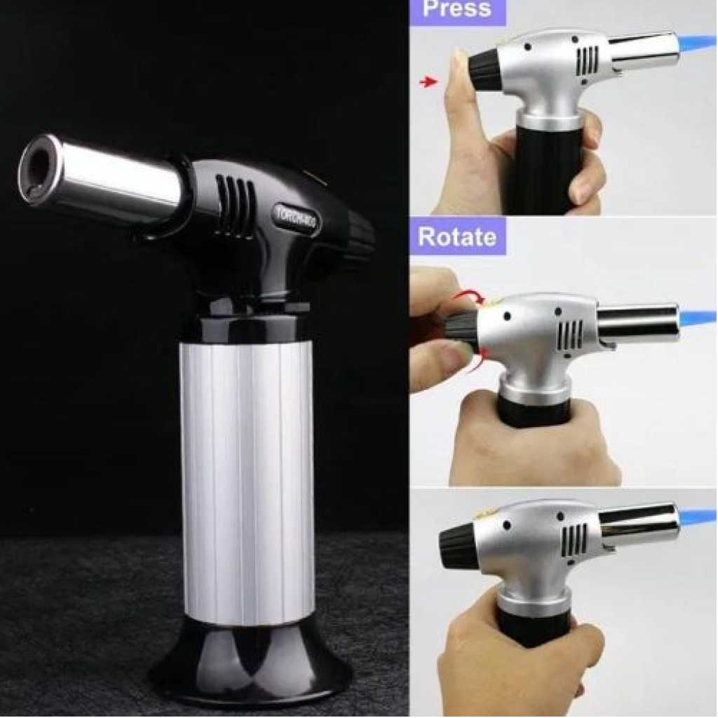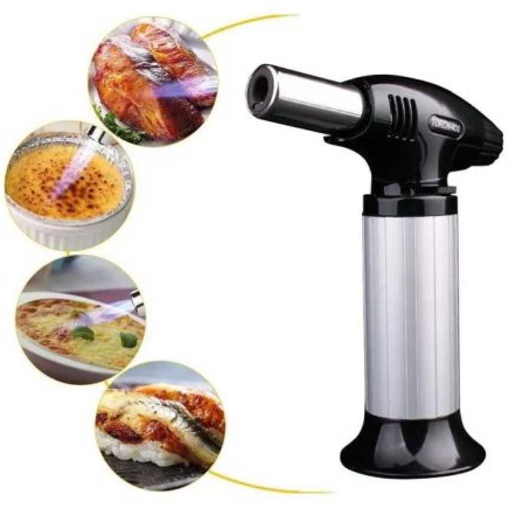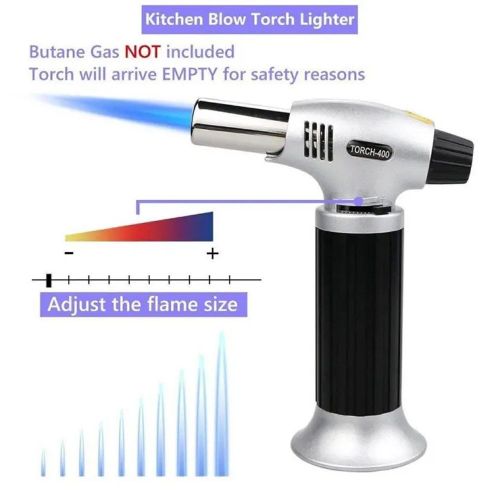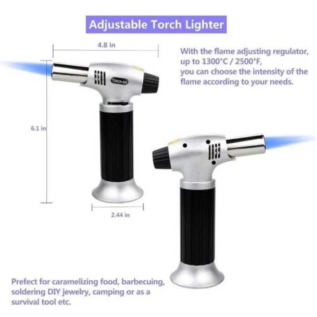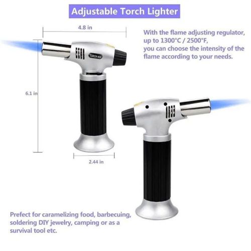 Key Features: Multi-Functional Torch Portable Culinary Torch Lighter / Butane Burner Flame Thrower- Multi-colour. Material: Stainless steel Tip Diameter: approx. 0.9cm This multi-functional flame gun is widely used in homes or workshops like camping cooking, fusing, and welding. touch automatic piezo ignition. Ergonomic design for comfortable holding in the hand. Safe and convenient to use, compact and portable. Flame temperature: 1300 degrees C. It can be fixed on the shop tank, which can be replaced, and the bicycle use is environmentally friendly. Combustion value: 50 -140 g / h. A jar of gas can use 1.6 hours to 2 hours continuously, replacing the new tank needs only a few seconds.