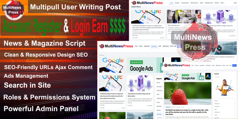 MultiNewsPress - Multipull User Writing Script. MultiNewsPress is a multi-purpose CMS (Admin Management System). It is clean, simple, responsive and user-friendly design.