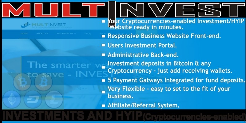 MultInvest - Cryptocurrencies Investment Script. Multipurpose Fiat and Cryptocurrencies Investment Website Script