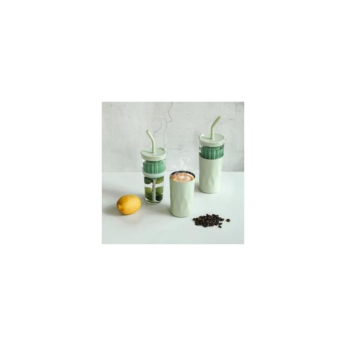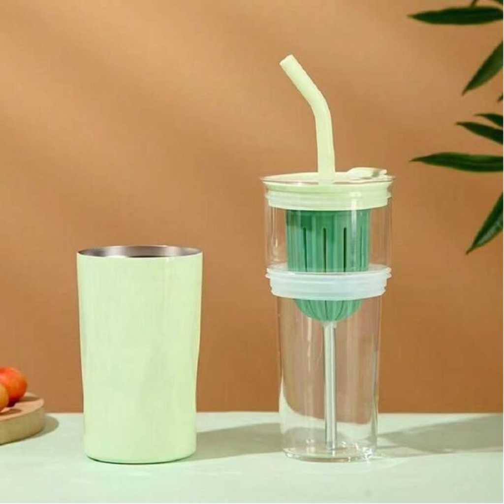 Key Features: Multipurpose Cup With Glass Liner, Stainless Steel & Convenient Coffee Cup, Tea & Water Separating Straw Sleek Glass Cup Stylish and attractive design High-quality glass and insulation materials Suitable for both hot and cold beverages Portable and easy to carry Perfect for students and daily use