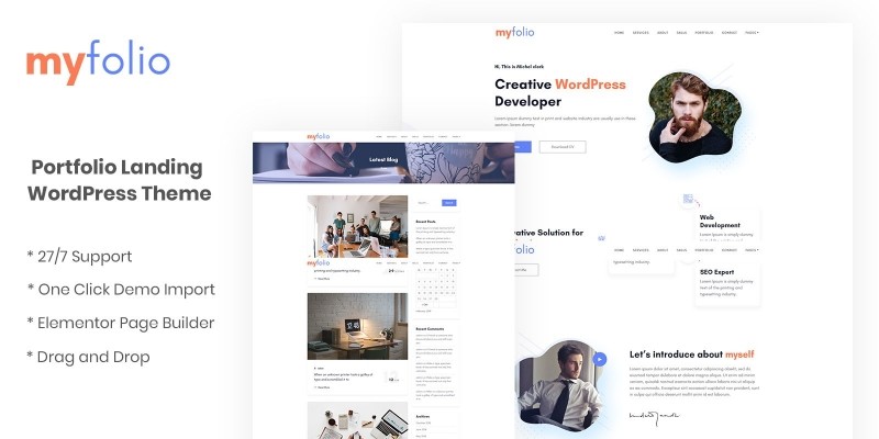 MyFolio - Portfolio Landing WordPress Theme. A theme for poertfolio, business and corporate websites compatible with Elementor page builder