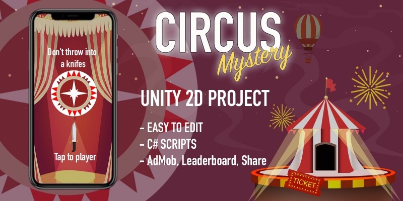 Mystery Circus - Full Unity Project. Game for iOS based on Unity 2D engine. Cool design. Game has AdMob. Easy to edit and reskin.