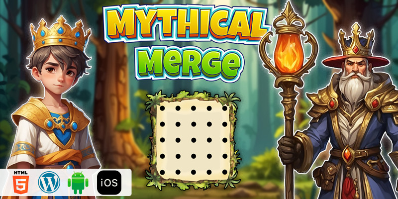 Mythical Merge - HTML5 Construct3 Game. Solve the puzzle and win the game, a shape based brain game