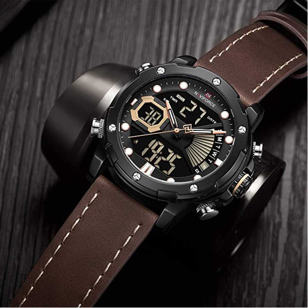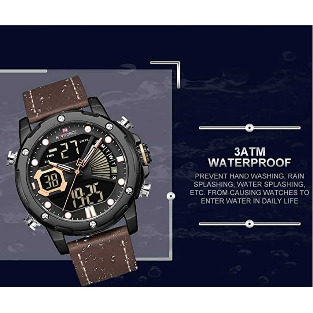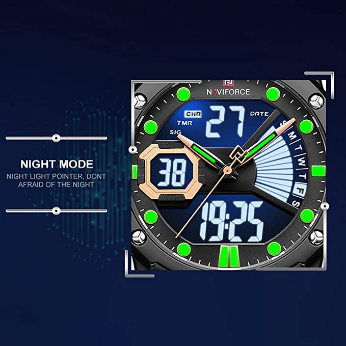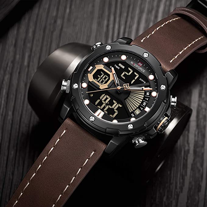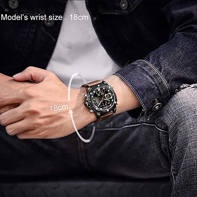 NAVIFORCE 9172 Men’s Watch – Business Fashion Luxury – Digital Quartz Dual Time Display – Casual Japanese Quartz Watches. Brand Name: NAVIFORCE Style: Fashion & Casual Clasp Type: Buckle Water Resistance Depth: 3Bar Movement: Dual Display Movement: QUARTZ Case Material: Stainless Steel Band Length: 26cm Dial Window Material Type: Hardlex Case Thickness: 16mm Band Width: 23mm Case Shape: Round Item Type: Quartz Wristwatches Boxes & Cases Material: No package Model Number: NF-9172 Band Material Type: Leather Feature: Shock Resistant Feature: Luminous Hands Feature: Stop Watch Feature: LED display Feature: Auto Date Feature: Week Display Feature: Water Resistant Feature: Chronograph Feature: Back Light Feature: Alarm Dial Diameter: 45mm Key Features: NAVIFORCE 9172 Men’s Watch – Business Fashion Luxury – Digital Quartz Dual Time Display – Casual Japanese Quartz Watches. [DIGITAL MULTIFUNCTIONAL] * Analog-digital Dual Display, 1/100-Second Stopwatch, LED Display?Week Display, Day and Date, Luminous Hands, Complete Calendar, Shock Resistant [IMPORTED MOVEMENT] * Reliable Japanese Miyota Quartz Movement, Ensure Precise Time Keeping ±1s Deviation Per Day. [Waterproof to 30M/99feet/3ATM] * In general, Withstands Rain And Splashes Of Water, But Not Swimming Or Submersion [SIZE RANGE & SPECIFICATION]*Case Material: Stainless Steel,Band Material Type: Leather,Dial Diameter: 45mm,Case Thickness: 16mm,Band Length: 260mm,Band Width: 23mm [CUSTOMER SERVICE] * We offer 60 Days of Free Replacement (or FULL Refund) And 1 Year After Sales Service For Watches.
