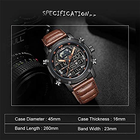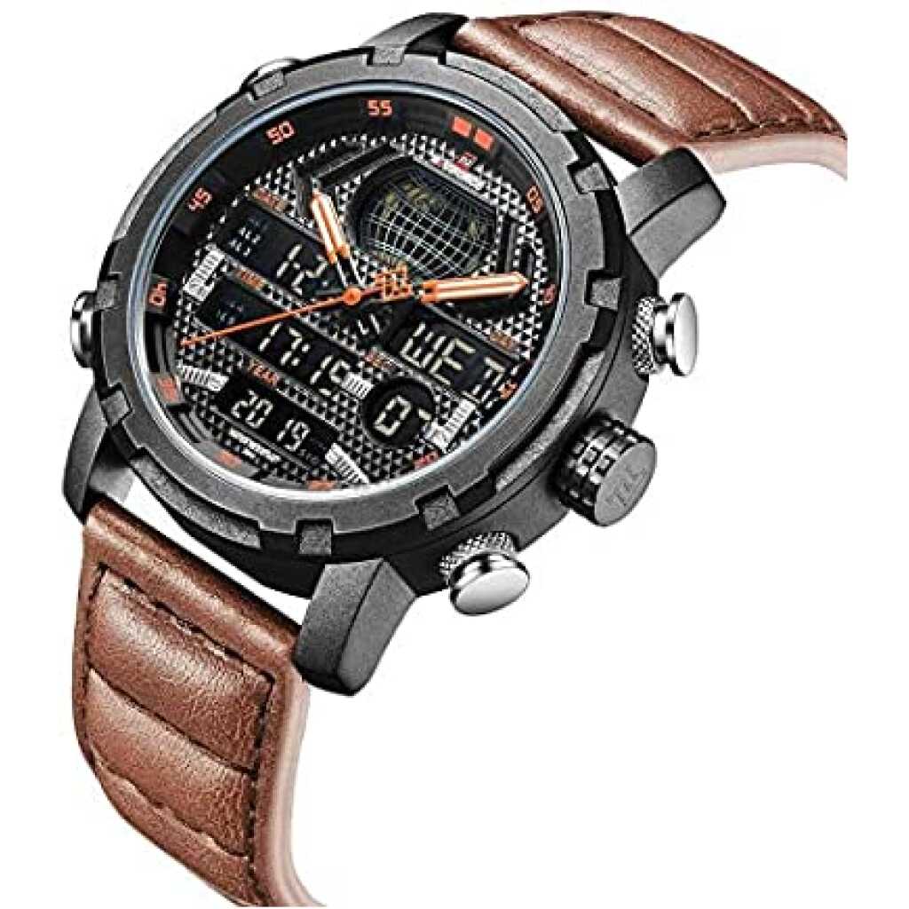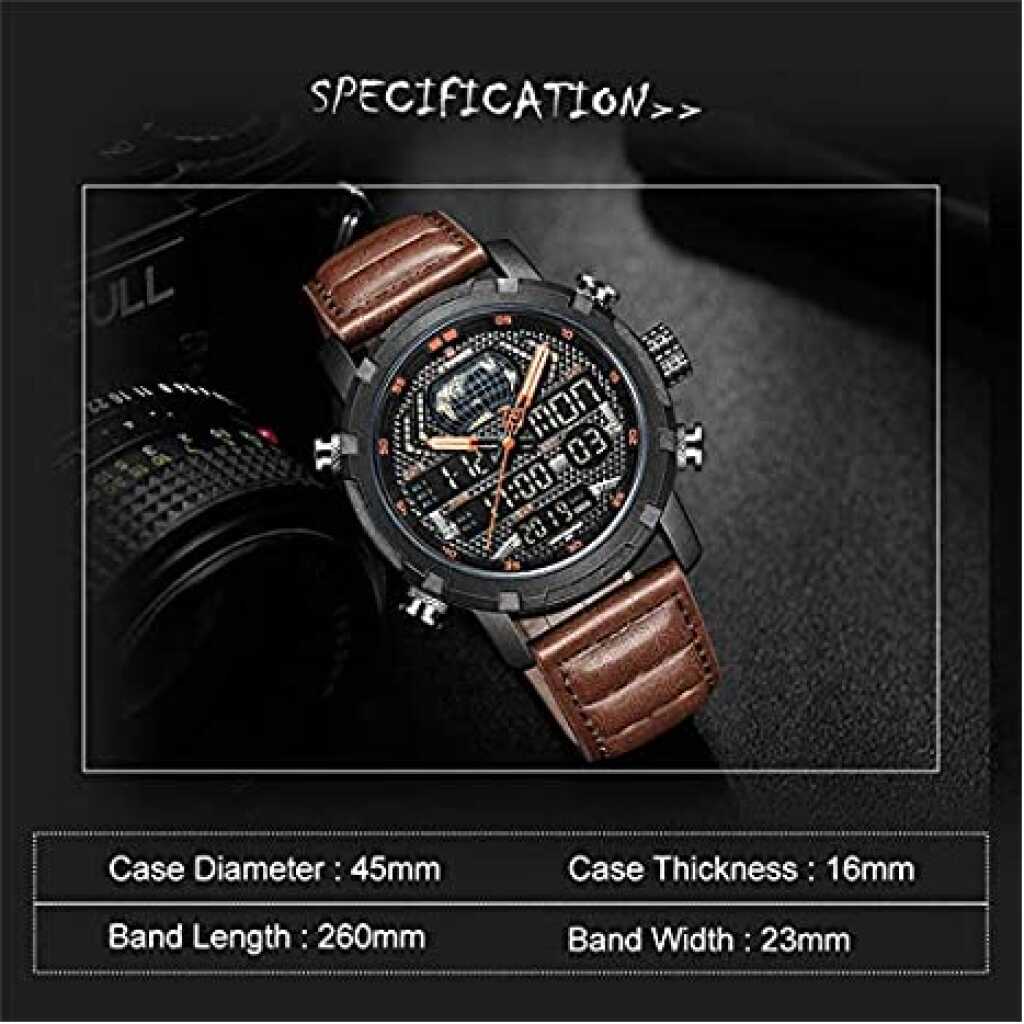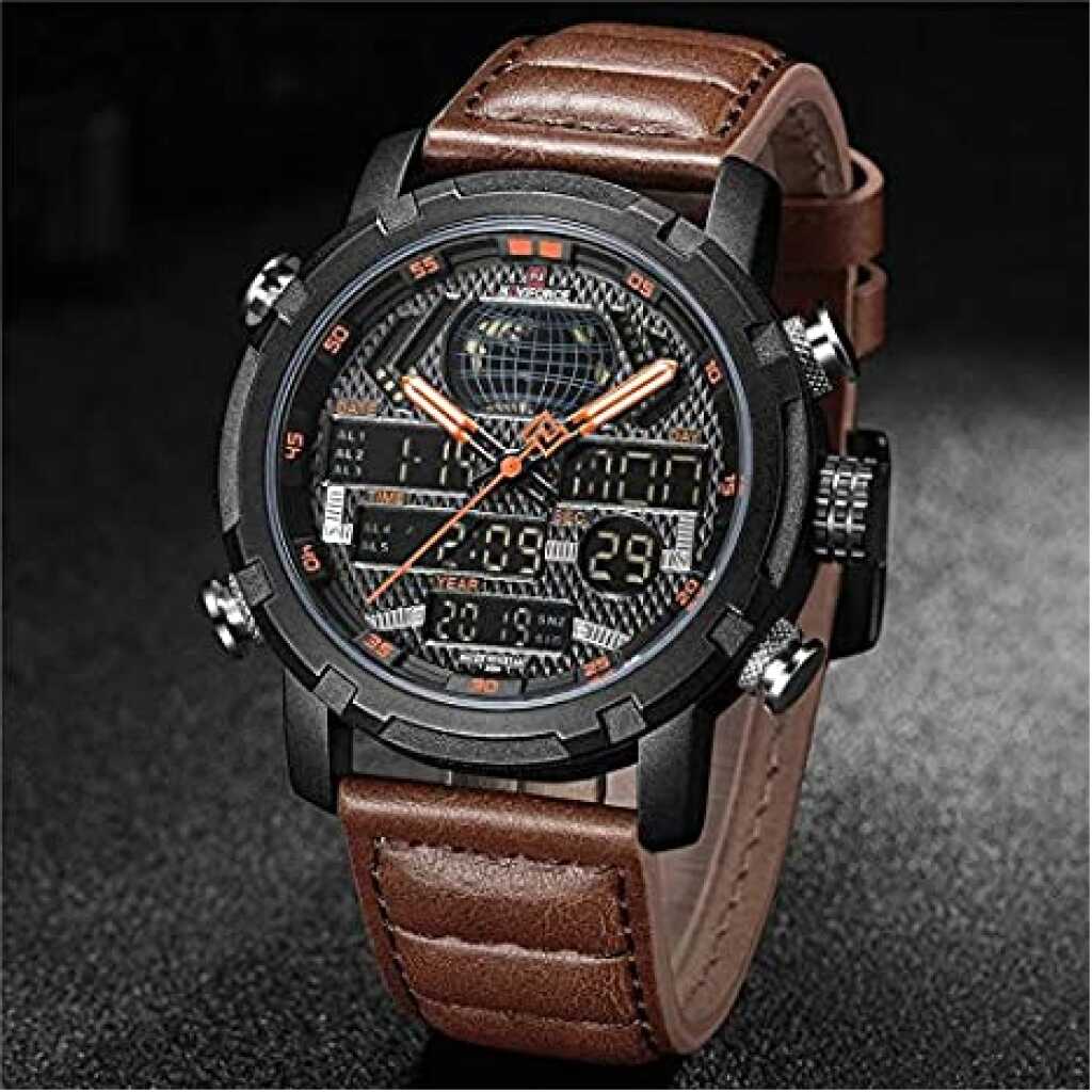 Naviforce Duel Display Chronograph Date Military Digital Analog Sport Men’s Wrist Watches -NF9160. NAVIFORCE 9160 Fashion Men Sport Chronograph Analog Digital Duel Display Watches Men’s Army Military Steel Quartz Watch We are the only seller selling Naviforce watches with Original watch packaging. We are an Authorised Distributor of the Naviforce Brand. ABOUT BRAND: Established back in 2012 in Guangzhou, NAVIFORCE has grown to be one of the best watch manufacturers as well as a popular brand recognized abroad. Just as its name suggests (combined with “Navy” and “Force”), NAVIFORCE aims to become the Navy Seal in the watch industry. “Personality & durability” – the design soul of NAVIFORCE has well interpreted the founder’s design philosophy. To create a personality from its appearance, and challenge the durability from its quality. Each watch of NAVIFORCE demonstrates the unremitting pursuit of unique design, exquisite craftsmanship, and perfect user experience Key Features: Naviforce Dual Display Chronograph Date Military Digital Analog Sport Men’s Wrist Watches -NF9160. New and high-quality Genuine Brand comes in an Original Box. This classic watch, has date and Week functions, a precise movement display, and a multi-function display. The perfect combination of fashion and sport. The leather band ensures comfortable touch, a chic look, and a strong performance. Mineral reinforced mirror, high-end steel strap, anti-scratch, and wear-resistant, classic and stylish appearance, never out of time Please check the Images for a complete description. Quartz movement, making sure you have the most precise time in hand. Features: Water Resistant, Auto Date, Week, Display, Leisure Army Military design Men’s watch 3ATM water resistance, prevent accidental contact with water, such as rainwater splash or washing hands (Please don’t press any key underwater)
