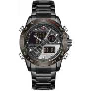 Naviforce Dual Display Men’s Stylish Waterproof Watch – Black Silver. It’s stainless steel dated and analog stylish designer digital and analog water proof Led display watch silver black. This watch has back light and alarm mode and a stopwatch.
