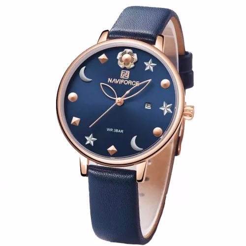 It’s a ladies less weight office and casual analog watch. It’s made of a stainless steel metal face and a fuax leather straps. It has blue straps which gives it a unique appearance. Key Features: Color blue Leather Analog Casual and office Quartz