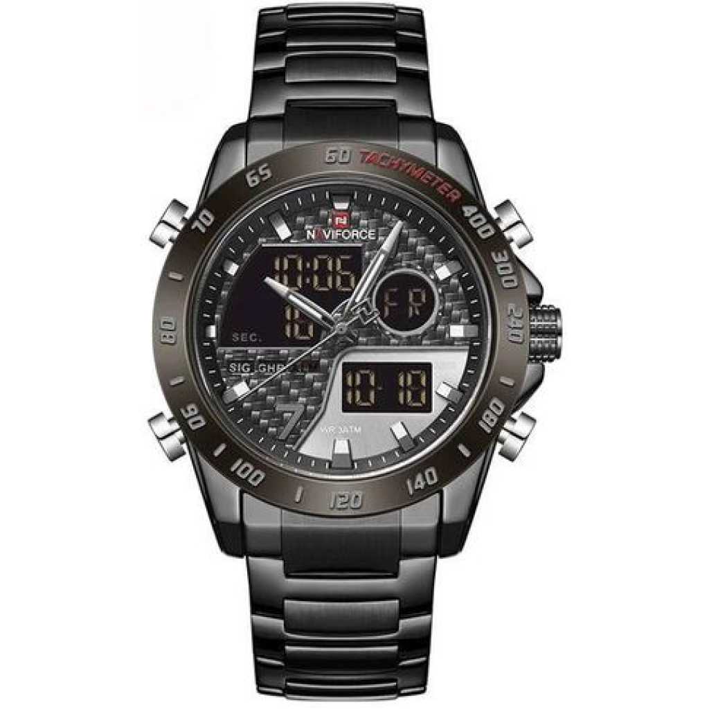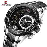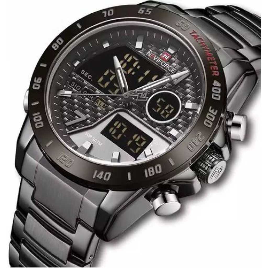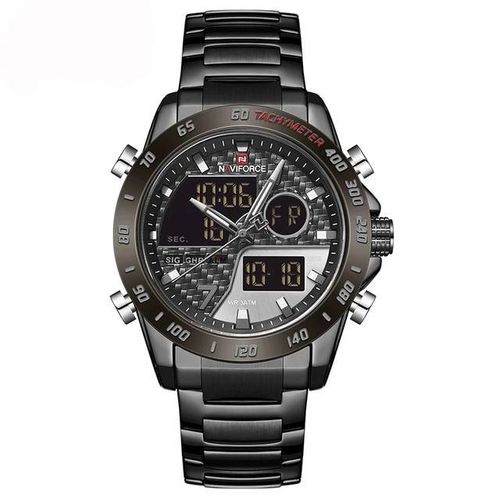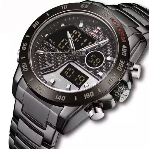 Naviforce Men’s Chronograph Analog And Digital Watch – Black. It’s a naviforce stainless steel chain designed digital and analog waterproof chronograph men’s luxury designer watch. This watch is waterproof and uses a replaceable cell. The watch has an adjustable stainless steel chain and can fit on any size of arm. This watch has a backlight which enables the user to tell time even in the dark. Key Features: Naviforce Men’s Chronograph Analog And Digital Watch – Black. Brand Naviforce Color Black Back light Chronograph Stainless Steel Waterproof