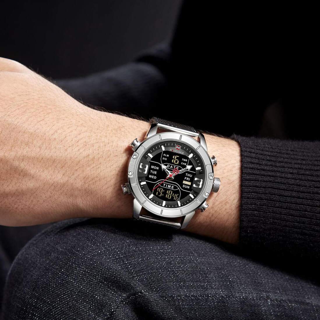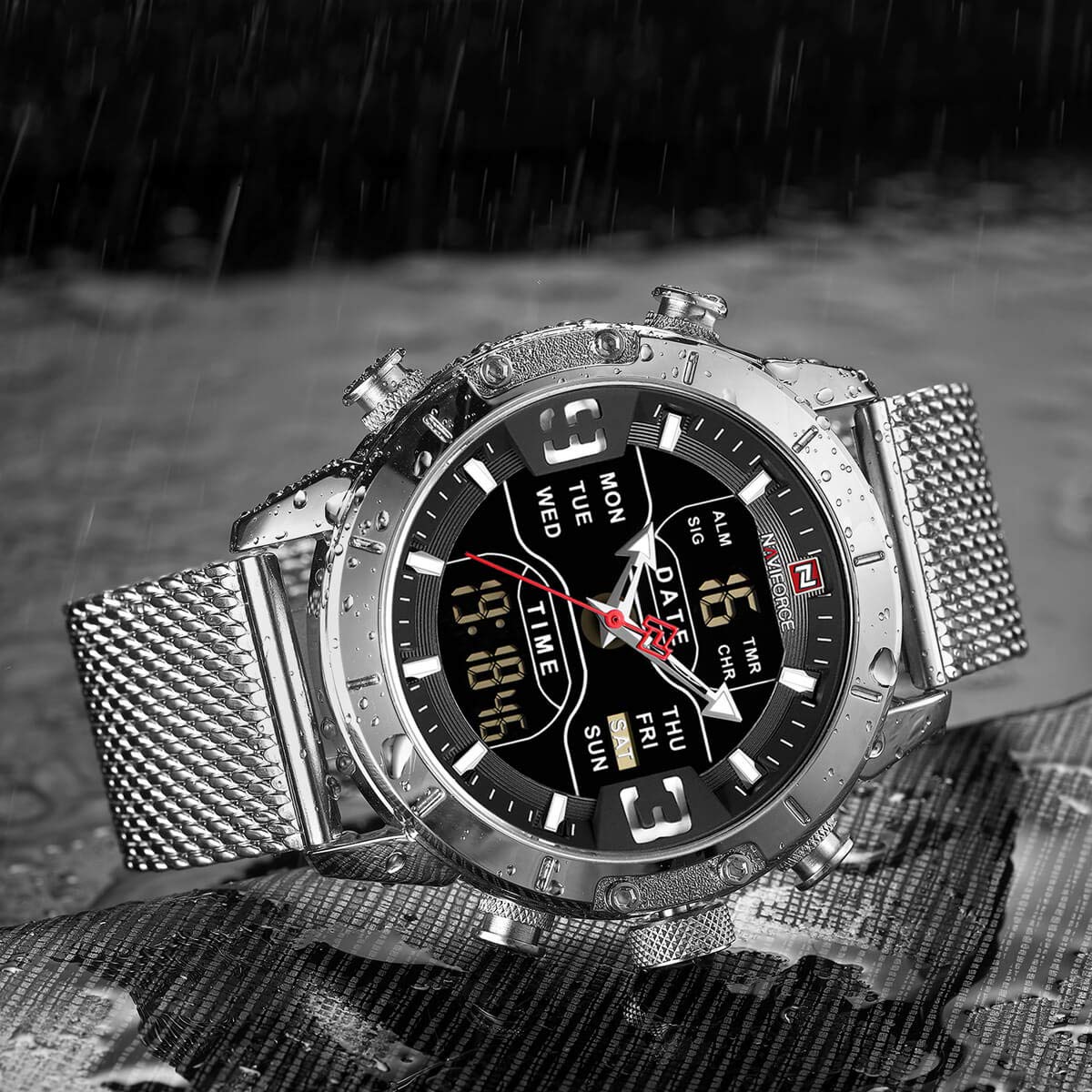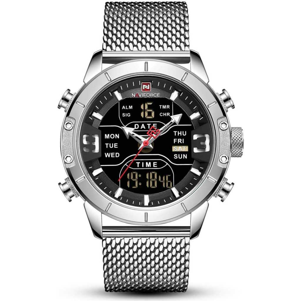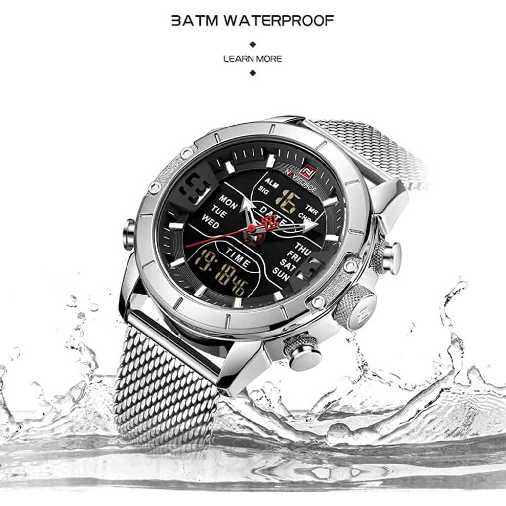NAVIFORCE Men's Watch Waterproof Multifunction LED Digital Quartz Wrist Watches Stainless Steel Mesh Strap