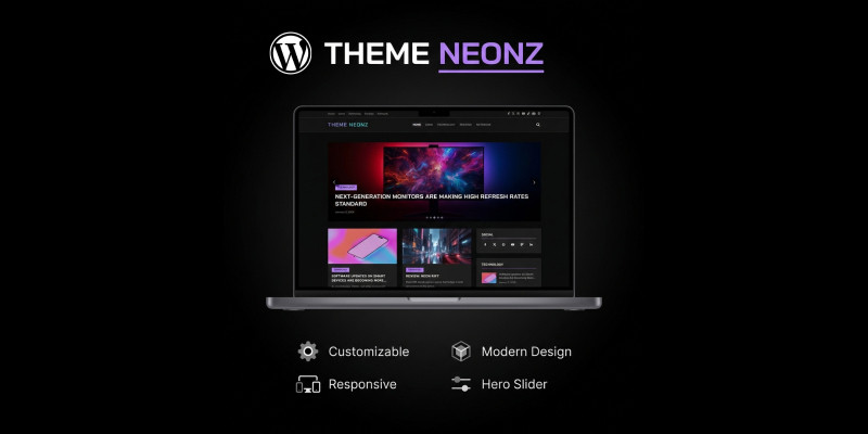 Neonz - Blog News Wordpress Blog Theme. Customizable WordPress theme with a modern neon design.