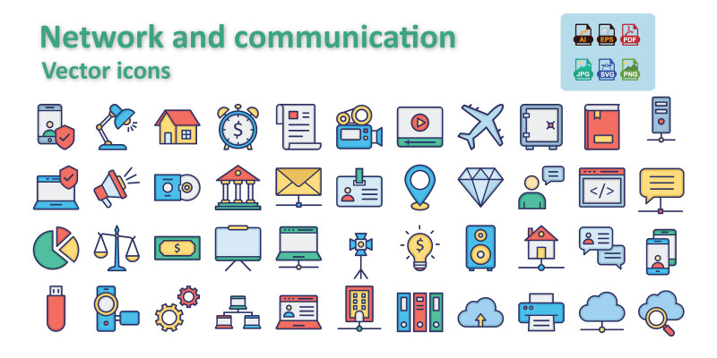 Network And Communication Vector Icons Pack. Network & Communication Vector Icons Pack with 50 scalable icons in multiple styles (AI, SVG, PNG).