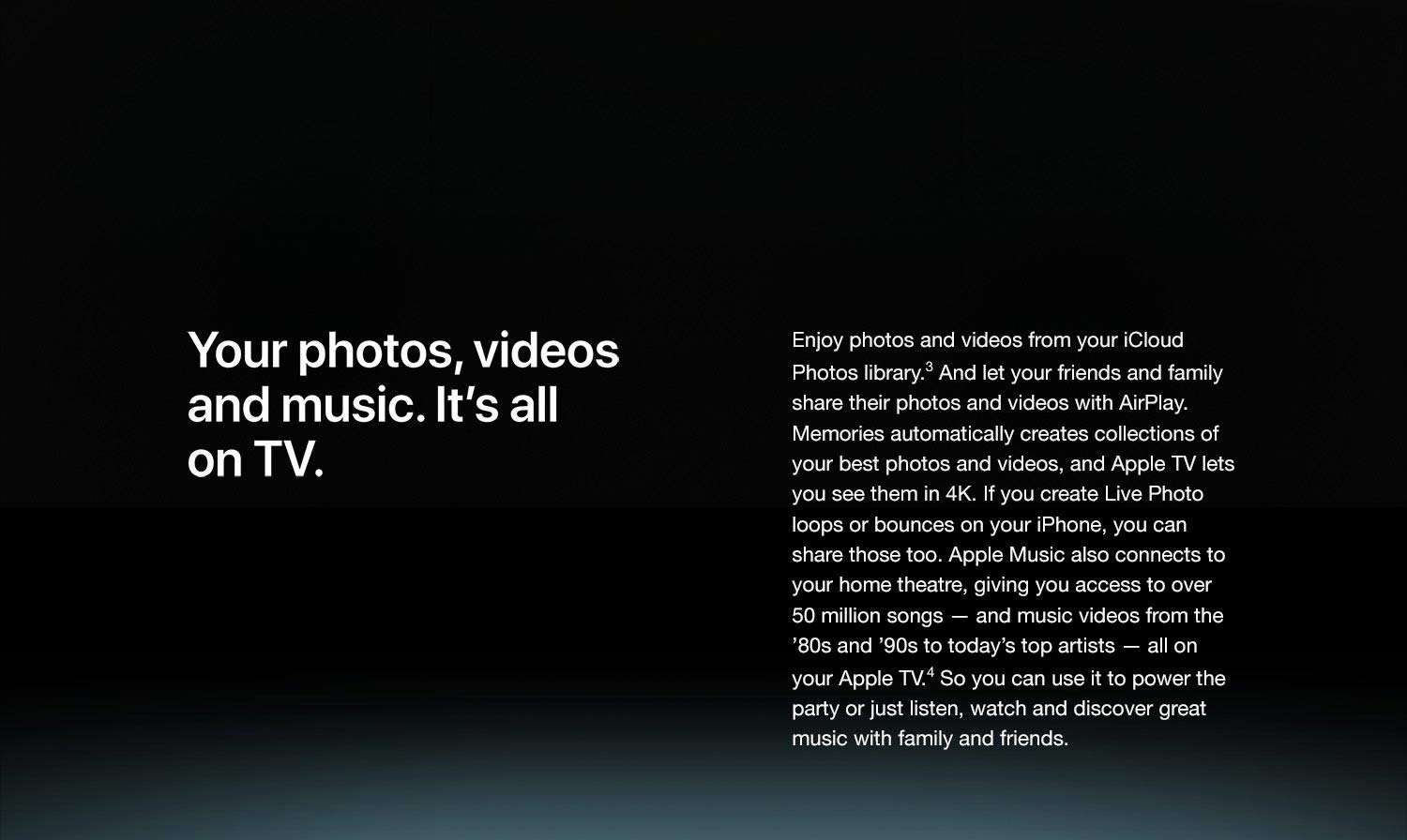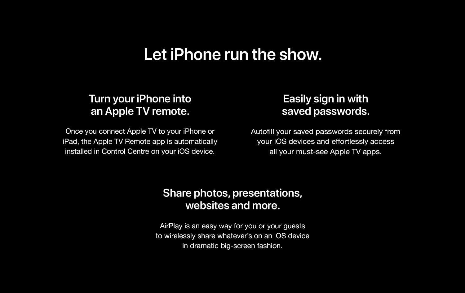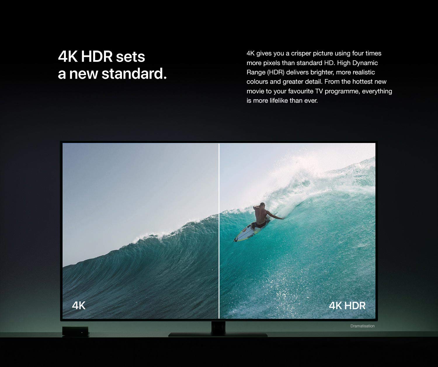 Key Features: 4k high dynamic range (dolby vision and hdr10) for stunning picture quality Dolby atmos for three-dimensional, room-filling sound A10x fusion chip for ultra-fast graphics and performance Navigate and search with the apple tv remote Use airplay to view photos and videos from your iPhone and iPad on your tv Netflix, Amazon prime video, hot star, alt balaji, Zee5, iTunes and thousands more apps in the app store