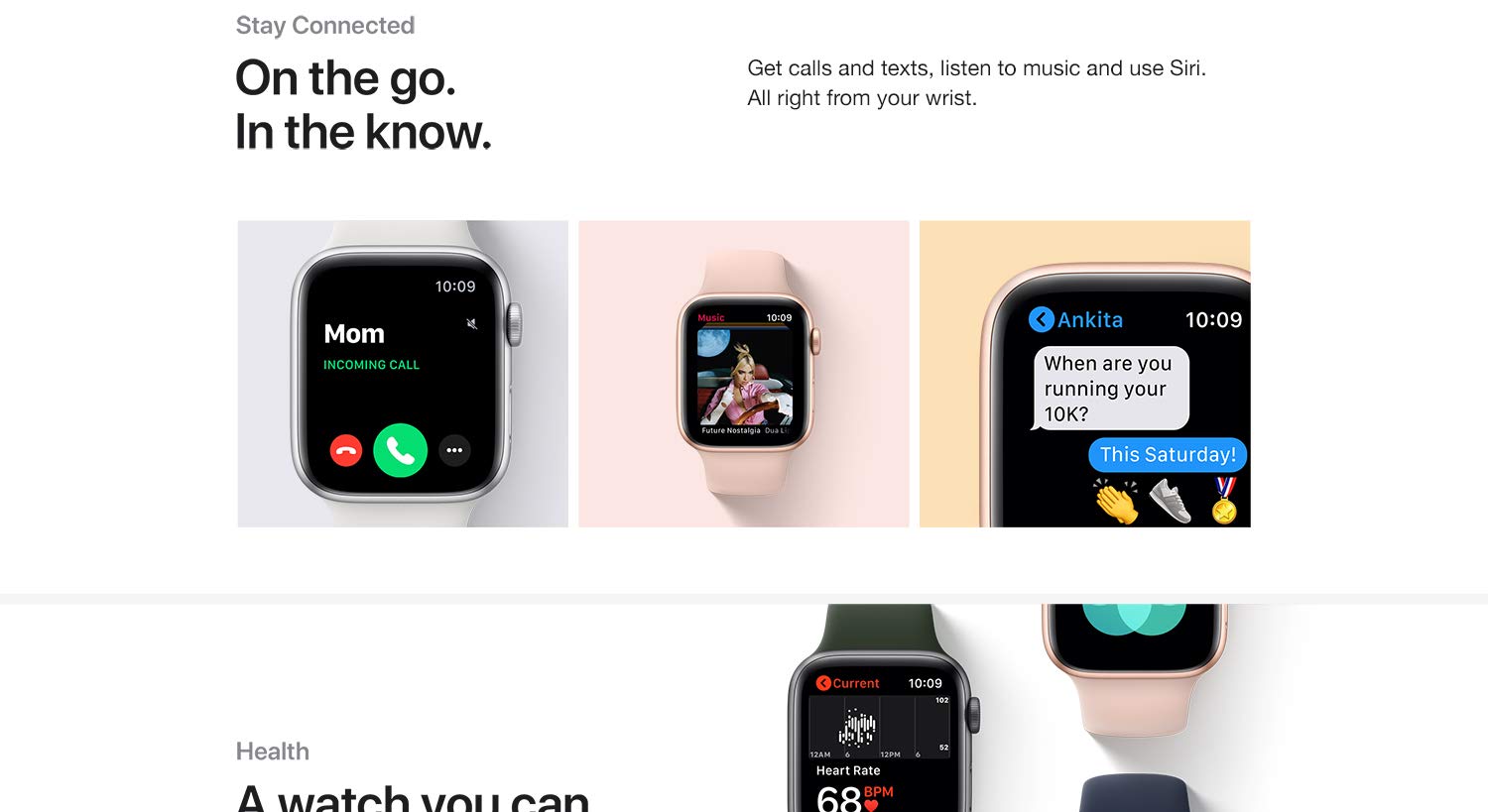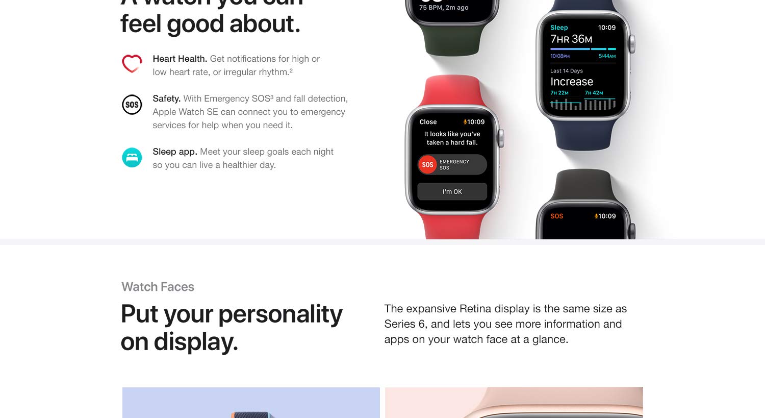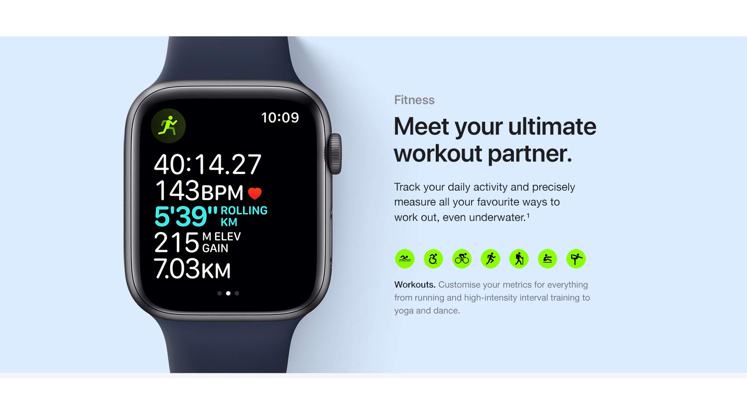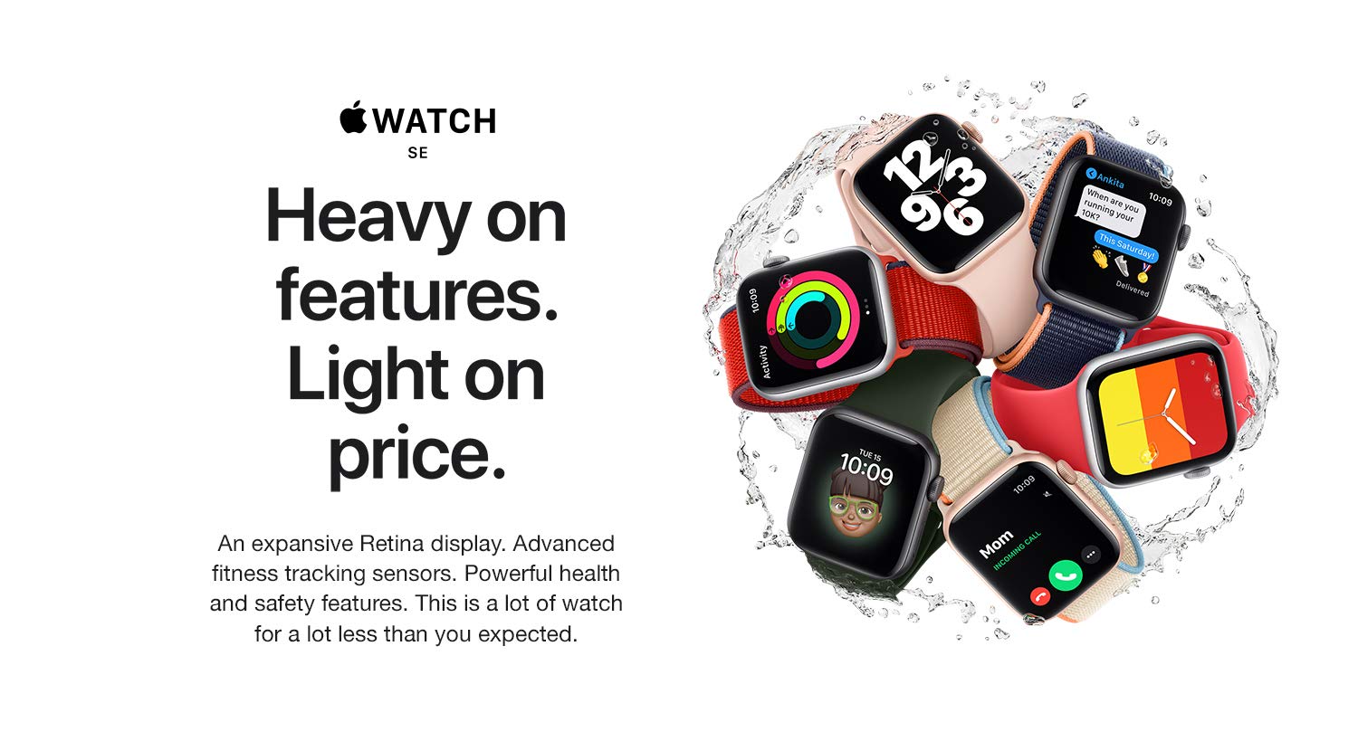Powerful features to help keep you connected, active, healthy, and safe. Advanced sensors to track all the ways you move and to measure your favorite workouts. And available cellular so you can go without your phone.1 Apple Watch SE is a lot of watch for a lot less than you expected. Key Features: GPS model lets you take calls and reply to texts from your wrist Large Retina OLED display Up to 2x faster processor than Series 3 Track your daily activity on Apple Watch and see your trends in the Fitness app on iPhone Measure workouts like running, walking, cycling, yoga, swimming, and dance Swimproof design High and low heart rate notifications and irregular heart rhythm notification