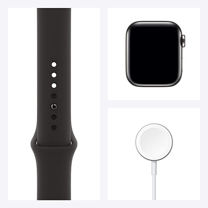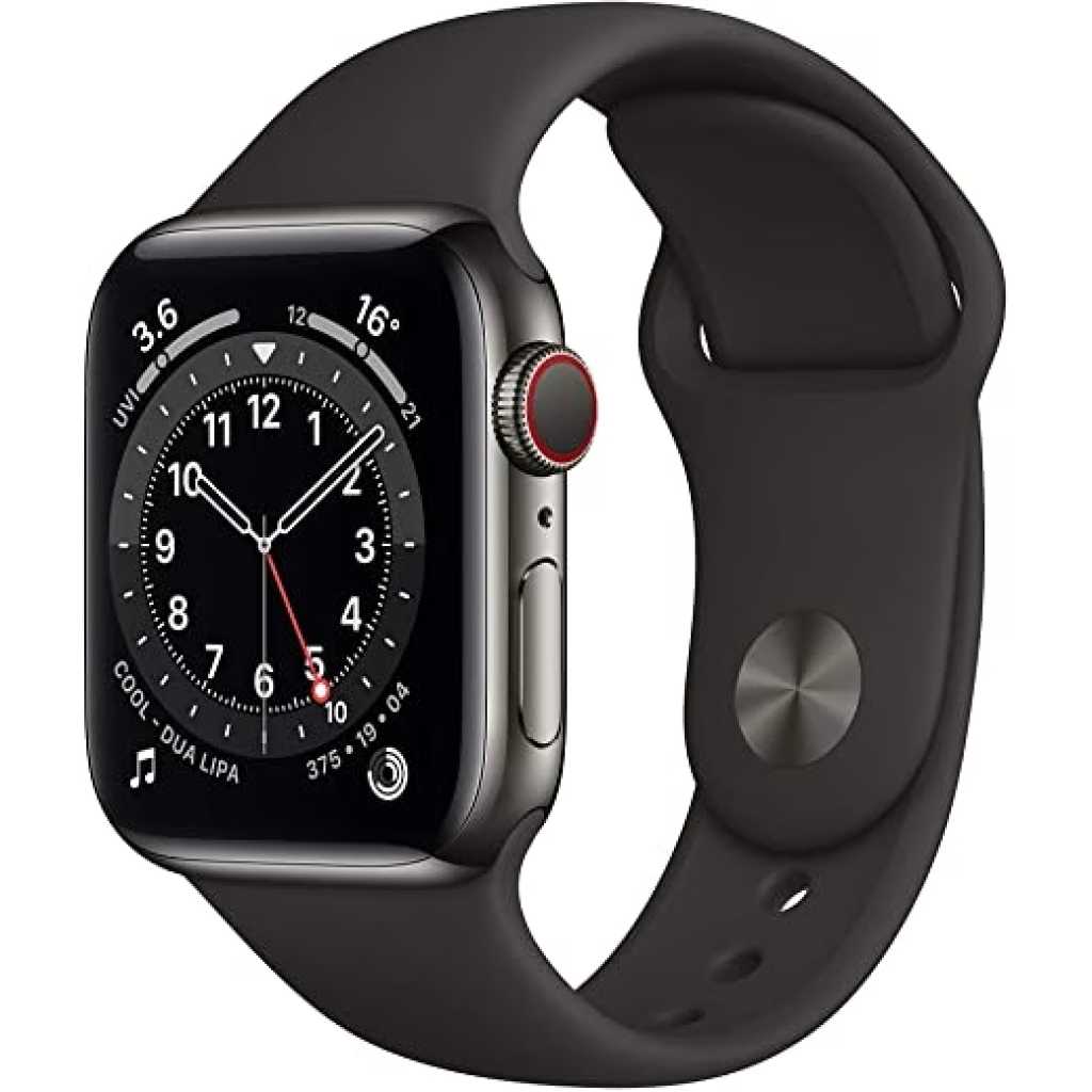 New Apple Watch Series 6 (GPS + Cellular, 40mm) - Graphite Stainless Steel Case with Black Sport Band