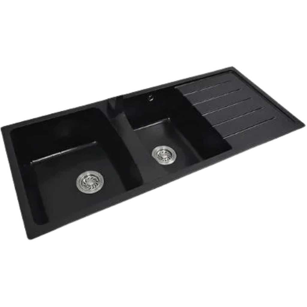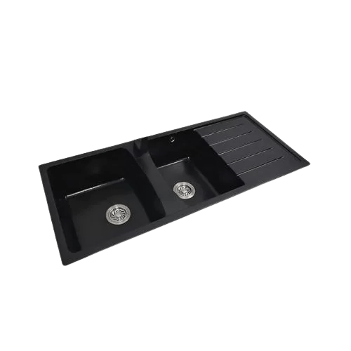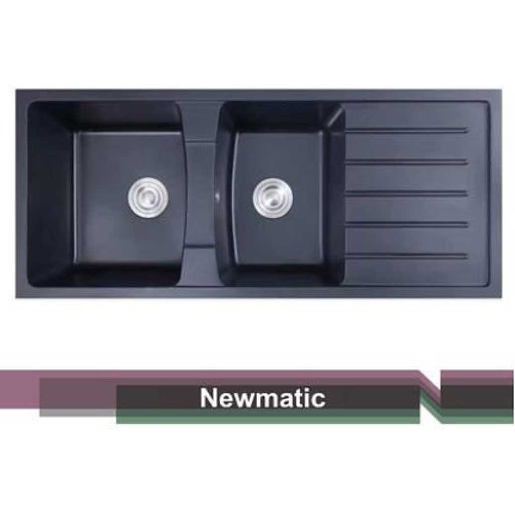 Transform your kitchen with the exquisite Newmatic Double Q116 deep bowl kitchen sink! Elevate your space with its seamless integration into your countertop, enhancing your kitchen’s elegance. Crafted from durable Quartz, this sink boasts two deep bowls, perfect for all your culinary needs. Upgrade your kitchen with this stylish and robust addition, designed to withstand the demands of everyday use while maintaining its pristine appearance. Experience the perfect blend of functionality and aesthetics, and redefine your cooking space today! Features: Crafted with highly durable, stain-resistant, and characterful black quartz No more clogged sinks with oversized, fully stainless steel drains, plugs, and strainer Insulation to deaden dripping sound and prevent moisture damage TYPE DOUBLE BOWL & DRAINER MOUNT TOP MATERIAL GRANITE DIMENSIONS 1160 x 485 X 240MM Key Features: Crafted with highly durable, stain-resistant and characterful black quartz No more clogged sinks with oversized, fully stainless steel drain, plug and strainer Insulation to deaden dripping sound and prevent moisture damage