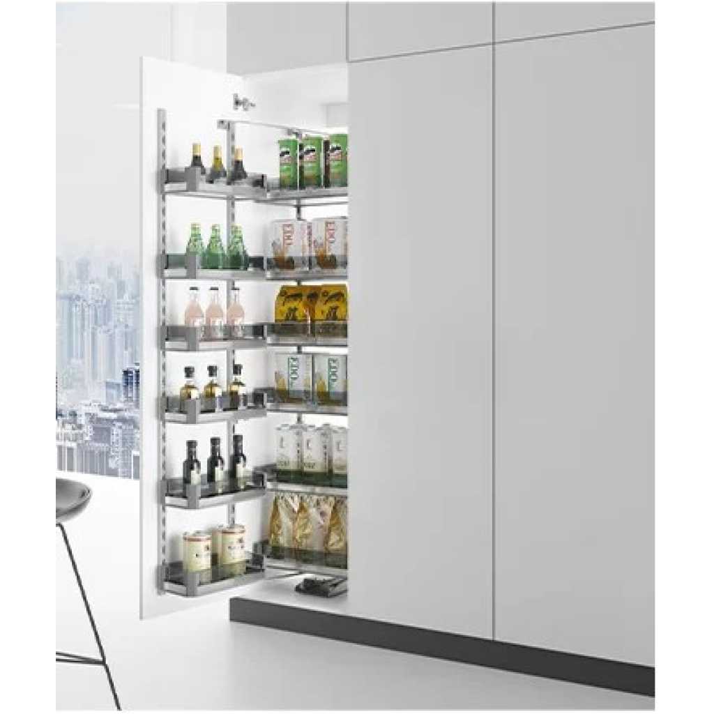 Key Features: Don’t have space for a walk-in pantry? Newmatic has you covered with the BK7360 Pull-Out Pantry, which is constructed of durable chrome steel and boasts six detachable shelves to store your groceries. The pantry also has a modern primary color finish. Optimize your kitchen with Newmatic kitchen hardware today. This product is designed to be installed in a kitchen cabinet. Pair with other Newmatic kitchen appliances and hardware for the perfect kitchen system. Suggested Cabinet Width – 600mm