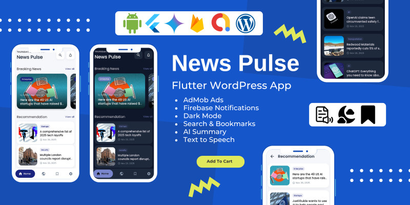 News Pulse - AI Powered Flutter News App. Convert any WordPress site into a native AI news app. Features Gemini AI, Audio, AdMob & Dark Mode.