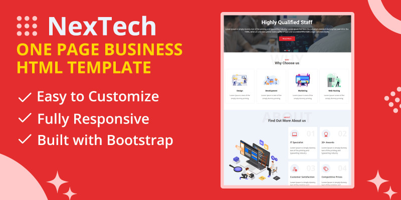 NexTech One Page Business HTML Template. One Page Business HTML Template is a sleek, modern, and responsive template designed for startups, agencies & corporate busine