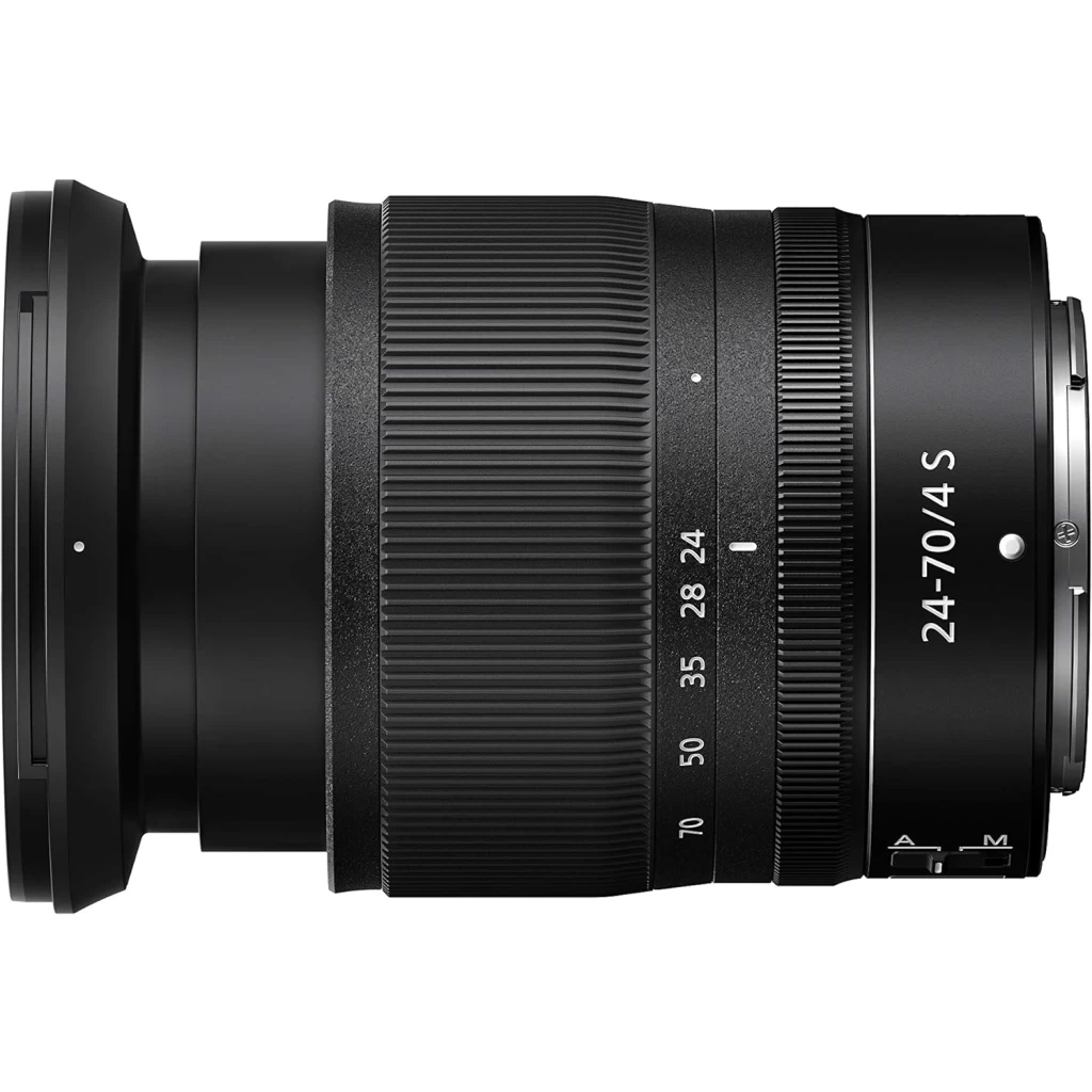 Nikon NIKKOR Z 24-70mm f/4 S | Premium Constant Aperture Mid-Range Zoom Lens for Z Series mirrorless Cameras – Black. A standard zoom that’s anything but standard. A 24-70mm zoom lens covers a sweet spot of the focal length range. Capture wide-angle views one moment, close-ups the next and everything in between. This reimagining of the classic everyday zoom, optimized and evolved for new Z cameras, achieves breakthrough image quality and performance for both stills and videos. Key Features: Nikon NIKKOR Z 24-70mm f/4 S | Premium Constant Aperture Mid-Range Zoom Lens for Z Series mirrorless Cameras – Black. Versatile 24-70mm wide-angle to medium telephoto zoom for Z Mirrorless cameras New optical Formula that Achieves extreme sharpness across the entire frame with virtually no distortion Constant f/4 max aperture for consistent exposure at any focal length Great for video with smooth, silent focusing, 5-axis Dual detect optical VR, a new customizable control ring Cutting-edge optical technology Empowered by the Z system’s larger mount, and shorter Flange distance