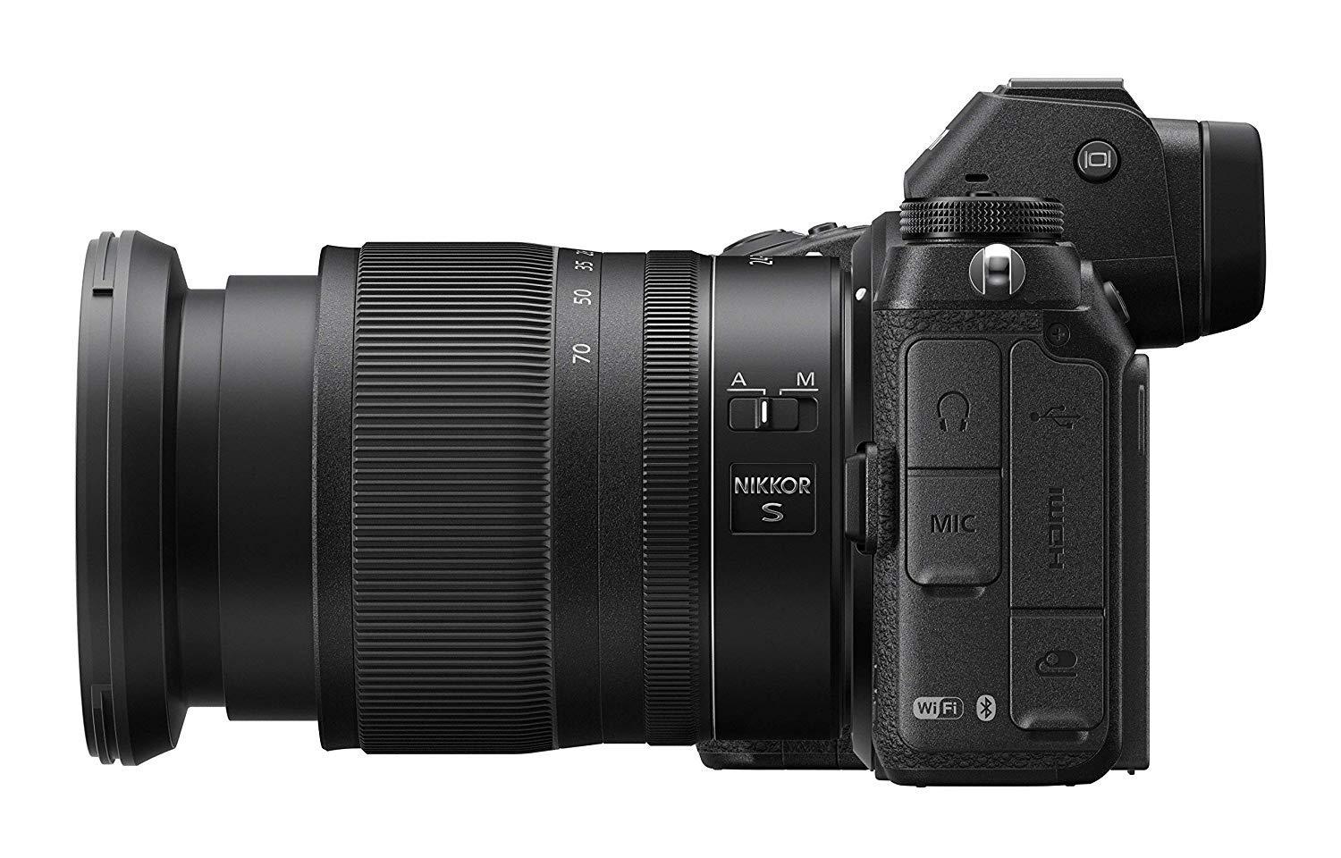 theZ 6 Mirrorless Camerais positioned as the “all-arounder” within the new Z System. Beginning with the Z Mount itself, a large-diameter design with a short 16mm flange distance allows Nikon to create compact, yet powerful cameras and develop more advanced optics. The Z 6 is among the first in the series, and features a high-performing FX-format 24.5MP BSI CMOS sensor and the EXPEED 6 Image Processing Engine delivering outstanding image quality and speed with a native sensitivity range of ISO 100-51200.In the Box Nikon Z6 FX-Format Mirrorless Camera(International Model)-24.5MP FX-Format BSI CMOS Sensor, EXPEED 6 Image Processing Engine, UHD 4K30 Video; N-Log & 10-Bit HDMI Out, 273-Point Phase-Detect AF System, Built-in to the body is a 5-axis sensor-shift Vibration Reduction mechanism, 3.2″ 2.1m-dot LCD screen , 3.6m-dot electronic finder, magnesium-alloy chassis, Built-in SnapBridge connectivity Nikon NIKKOR Z 24-70mm f/4 S Lens-Z-Mount Lens/FX Format, Aperture Range: f/4 to f/22, Aspherical Extra-Low Dispersion Element, Three Aspherical Elements, Nano Crystal & Super Integrated Coatings, Stepping Motor AF System, Programmable Control Ring, Weather-Sealed Design, Fluorine Coating, Rounded 7-Blade Diaphragm, Retractable Design A 24.5MP BSI CMOS sensor is used for all-around shooting, impressive low-light quality, and fast readout speeds to benefit continuous shooting, movies, and time-lapse recording. The back-illuminated design of the sensor affords noticeably cleaner high-sensitivity output for reduced noise when working at high ISO values, up to a native ISO 51200, as well as vivid and smooth quality at sensitivities as low as ISO 100. Built-in SnapBridge connectivity to enable seamless transfer of low-resolution imagery as well as remote shooting capabilities. BLE (Bluetooth Low Energy) and Wi-Fi enables communication between the camera and a smart device and, additionally, the mobile device can remotely trigger the shutter and display a live view image from the camera to enable working from a distance 3.6m-dot electronic finder is present for comfortable eye-level viewing. It has a high 0.80x magnification and uses NIKKOR optics to guarantee a sharp, clear image. The finder also has a Fluorine coating for easier cleaning.