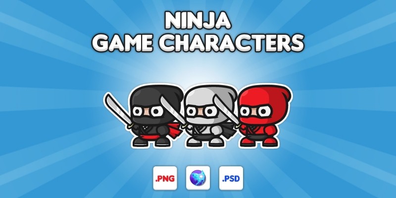 Ninja Chibi Characters. 2D Ninja Game Characters