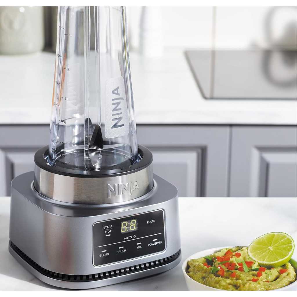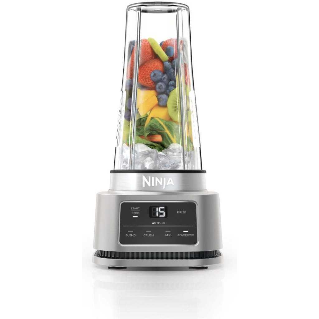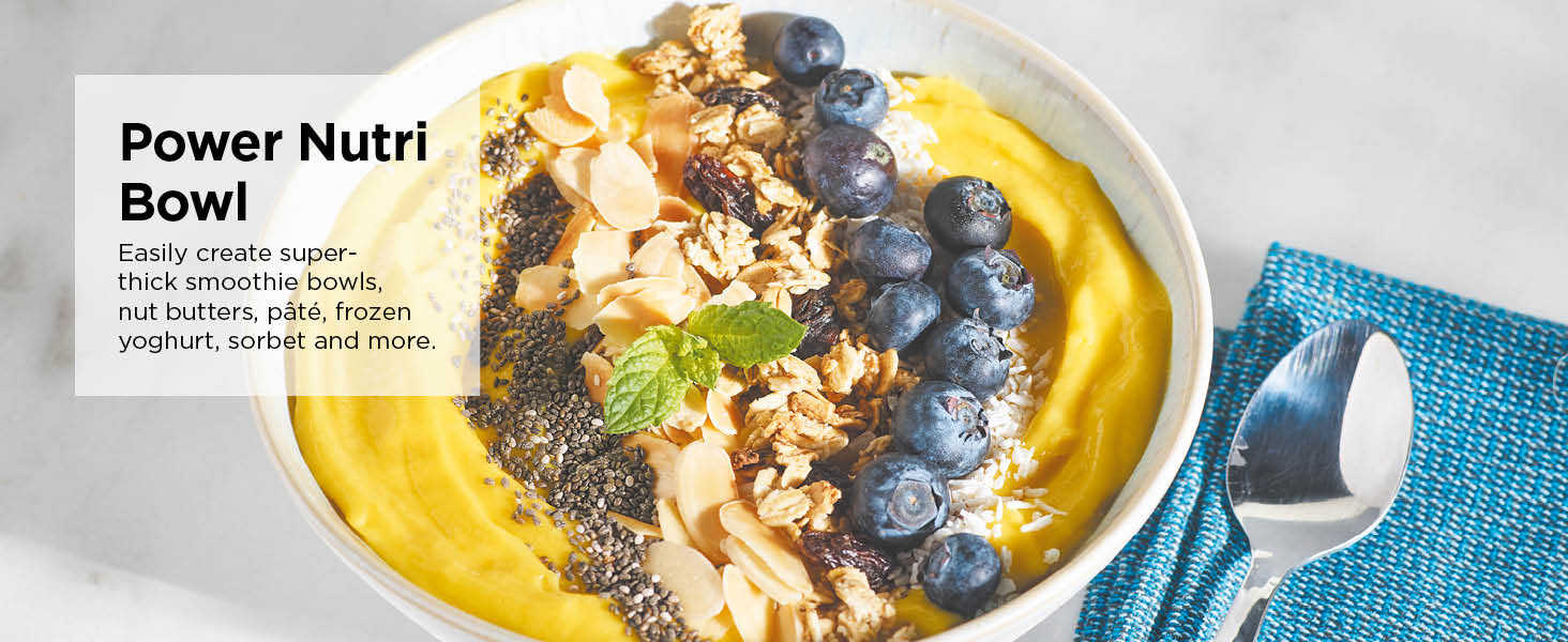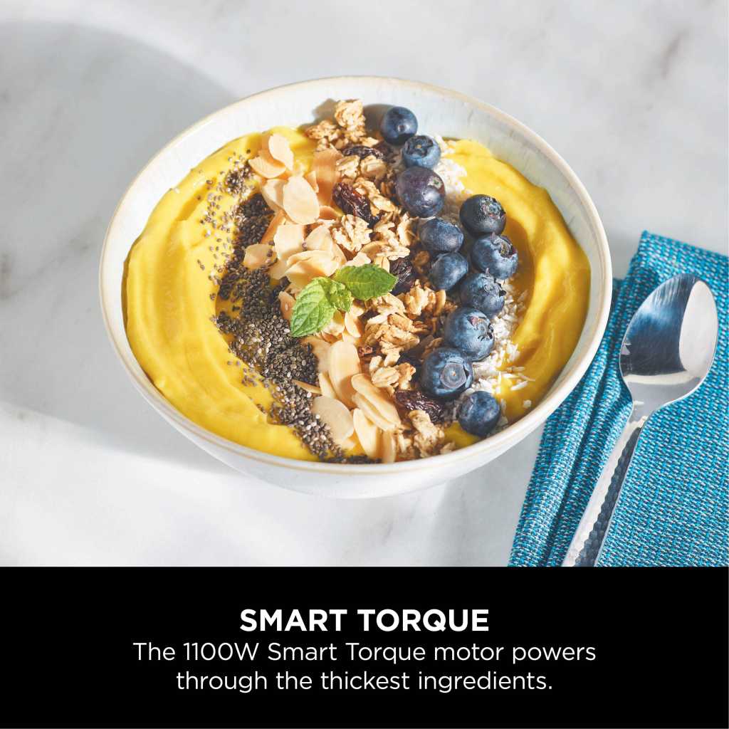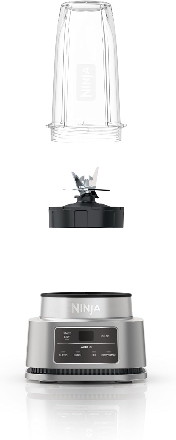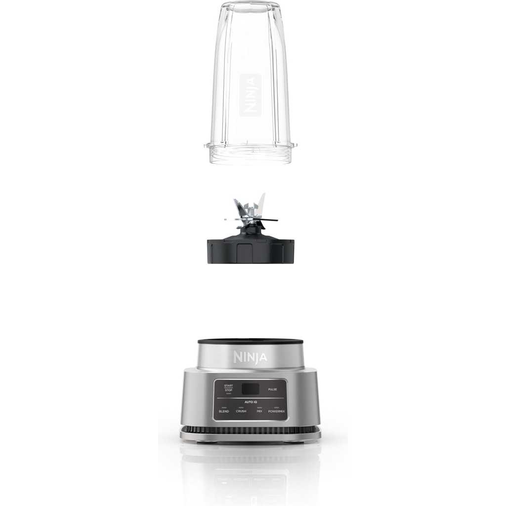 Ninja Foodi Power Nutri Blender 2-in-1, 1100W, Blend Smoothie Bowls, Thick Spreads & Frozen Drinks, Automatic Programs, 700ml Cup & 400ml Bowl with Power Paddle, Silver, CB102ME, 2 Years Warranty. 2 APPLIANCES IN 1: Create thicker textures in the 400ml Power Nutri Bowl with a built-in Power Paddle, and blend drinks and dressings in the Power Nutri Cup. Dishwasher safe parts. MORE THAN SMOOTHIES: Create a variety of textures including spoon-thick smoothie bowls, spreads and nut butters, smooth drinks and dressings. NO STALLING, STIRRING OR SHAKING: Power through thick mixtures with Smart Torque 1100W motor. Twist the paddle as you blend in the bowl to keep stubborn ingredients moving. 4 AUTOMATIC PROGRAMS: Blend, Crush, Mix and PowerMix. Auto-iQ Technology does all the hard work for you, delivering the results you want at the touch of a button. INCLUDES: Ninja Power Nutri Blender 1100W, 400ml Bowl with Power Paddle, storage lid, 700ml Cup with spout lid, Hybrid Edge blades, Recipe Guide DIMENSIONS: H30 x W17 x D17cm. Weight: 2.08kg. 2-year guarantee upon registration with Ninja. 1100W motor powers through the thickest mixtures – no stalling, no stirring, no shaking Blend smoothies, drinks & dressings Create super-thick smoothie bowls with built-in Power Paddle 4 automatic programs – Blend, Crush, Mix, PowerMix From the manufacturer