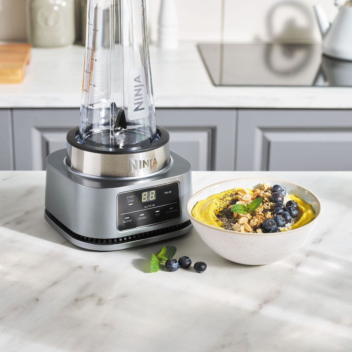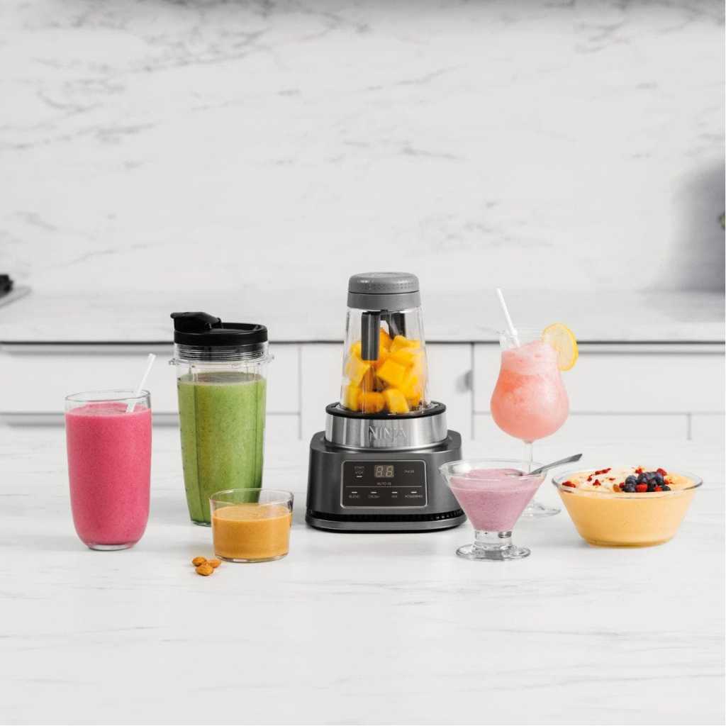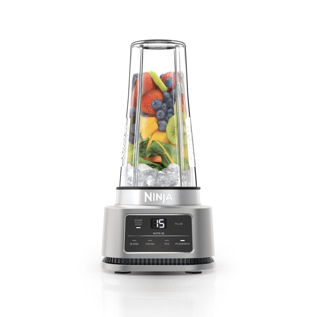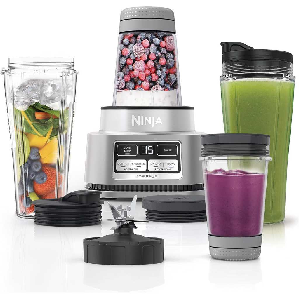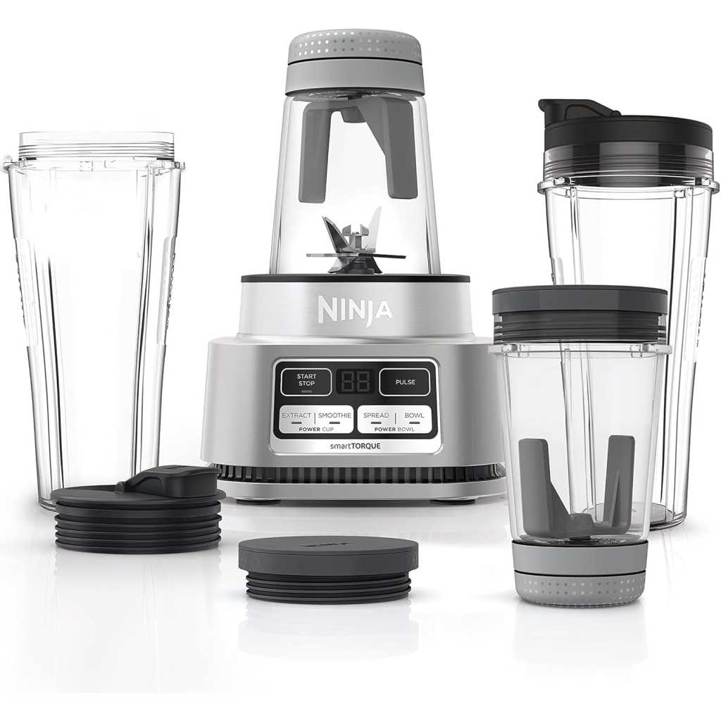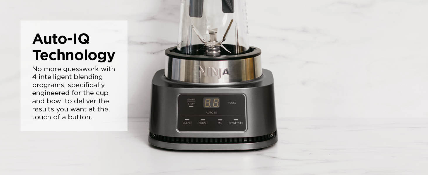 Ninja Foodi Power Nutri Blender 2-in-1, 1100W, Blend Smoothie Bowls, Thick Spreads & Frozen Drinks, Automatic Programs, 700ml Cup & 400ml Bowl with Power Paddle, Silver, CB102ME, 2 Years Warranty. 2 APPLIANCES IN 1: Create thicker textures in the 400ml Power Nutri Bowl with a built-in Power Paddle, and blend drinks and dressings in the Power Nutri Cup. Dishwasher safe parts. MORE THAN SMOOTHIES: Create a variety of textures including spoon-thick smoothie bowls, spreads and nut butters, smooth drinks and dressings. NO STALLING, STIRRING OR SHAKING: Power through thick mixtures with Smart Torque 1100W motor. Twist the paddle as you blend in the bowl to keep stubborn ingredients moving. 4 AUTOMATIC PROGRAMS: Blend, Crush, Mix and PowerMix. Auto-iQ Technology does all the hard work for you, delivering the results you want at the touch of a button. INCLUDES: Ninja Power Nutri Blender 1100W, 400ml Bowl with Power Paddle, storage lid, 700ml Cup with spout lid, Hybrid Edge blades, Recipe Guide DIMENSIONS: H30 x W17 x D17cm. Weight: 2.08kg. 2-year guarantee upon registration with Ninja. 1100W motor powers through the thickest mixtures – no stalling, no stirring, no shaking Blend smoothies, drinks & dressings Create super-thick smoothie bowls with built-in Power Paddle 4 automatic programs – Blend, Crush, Mix, PowerMix From the manufacturer