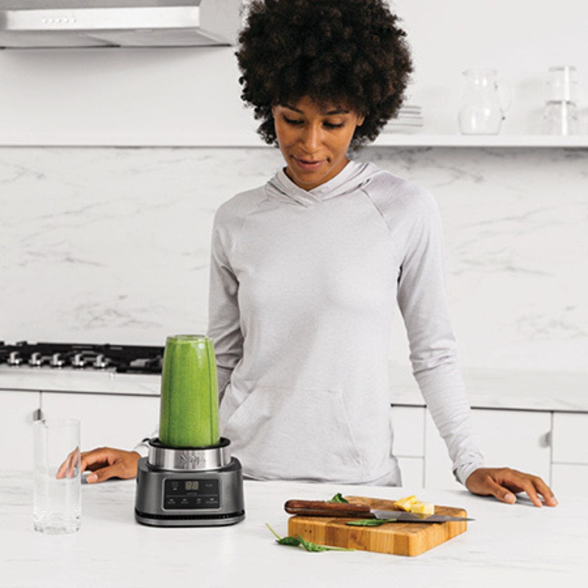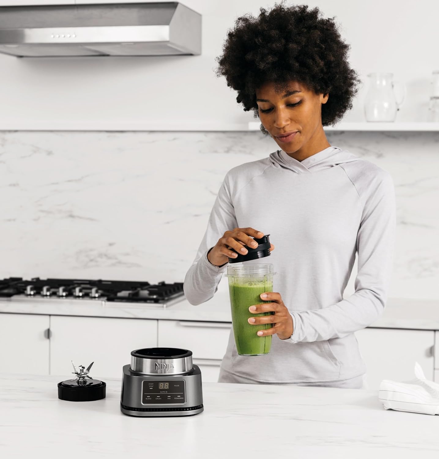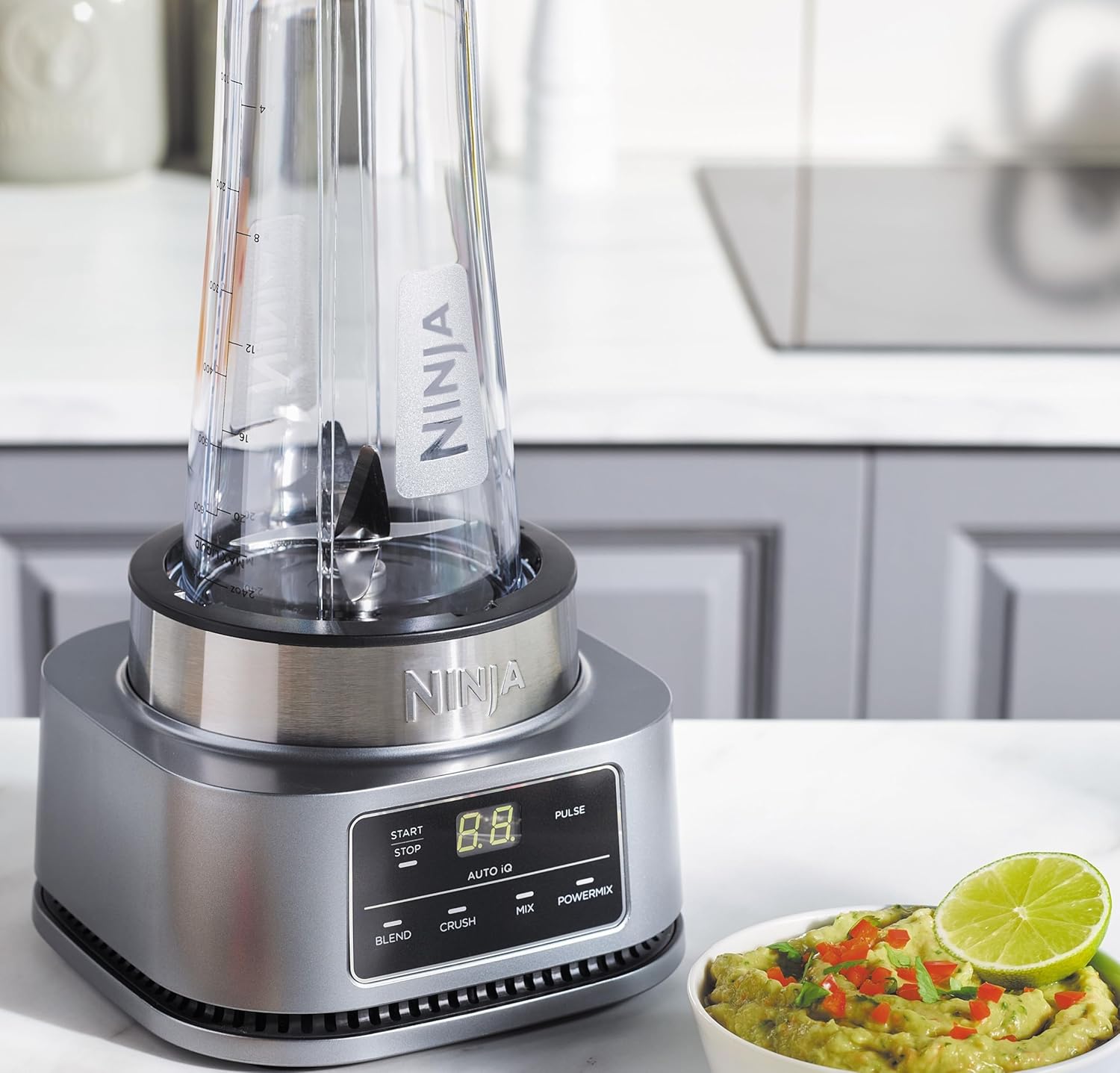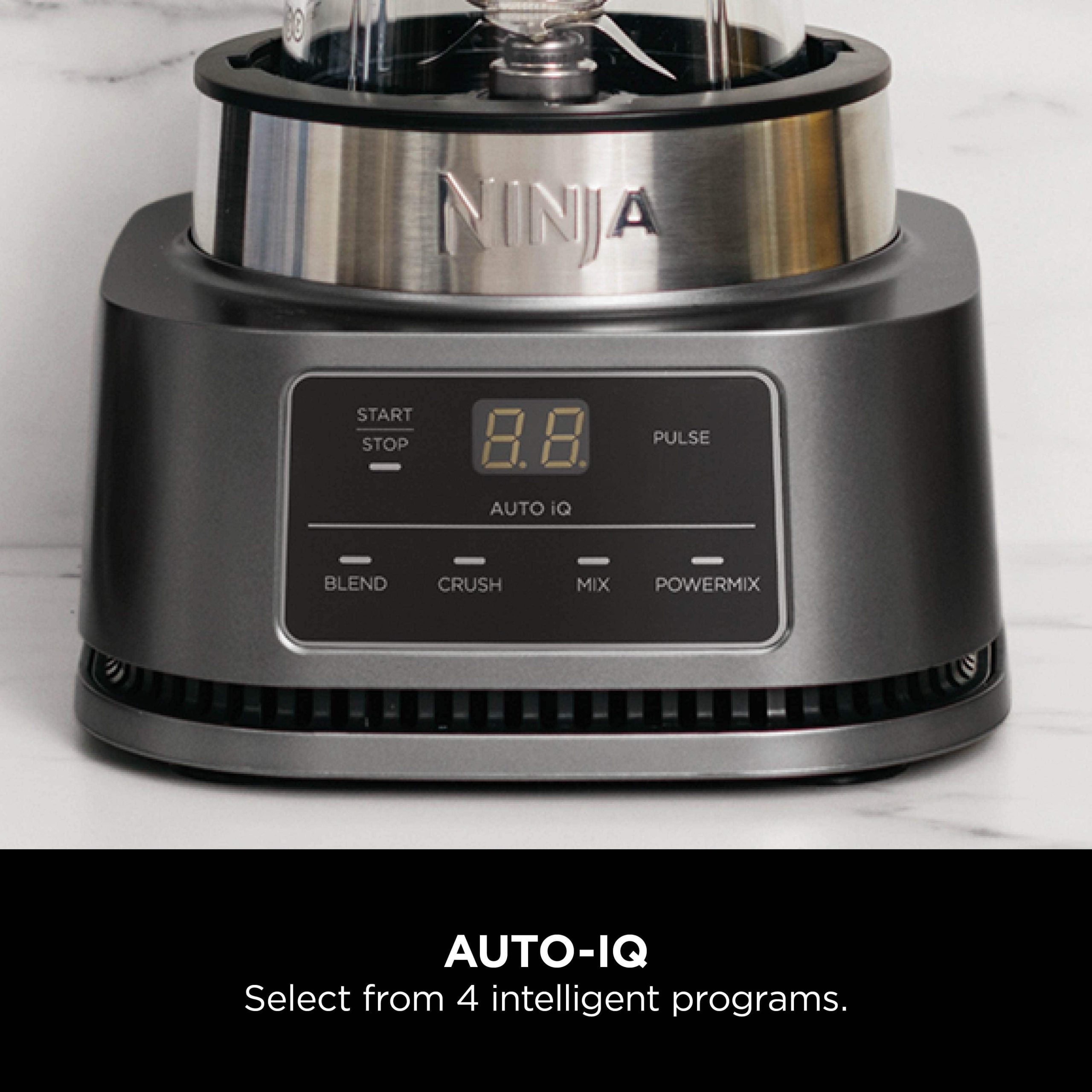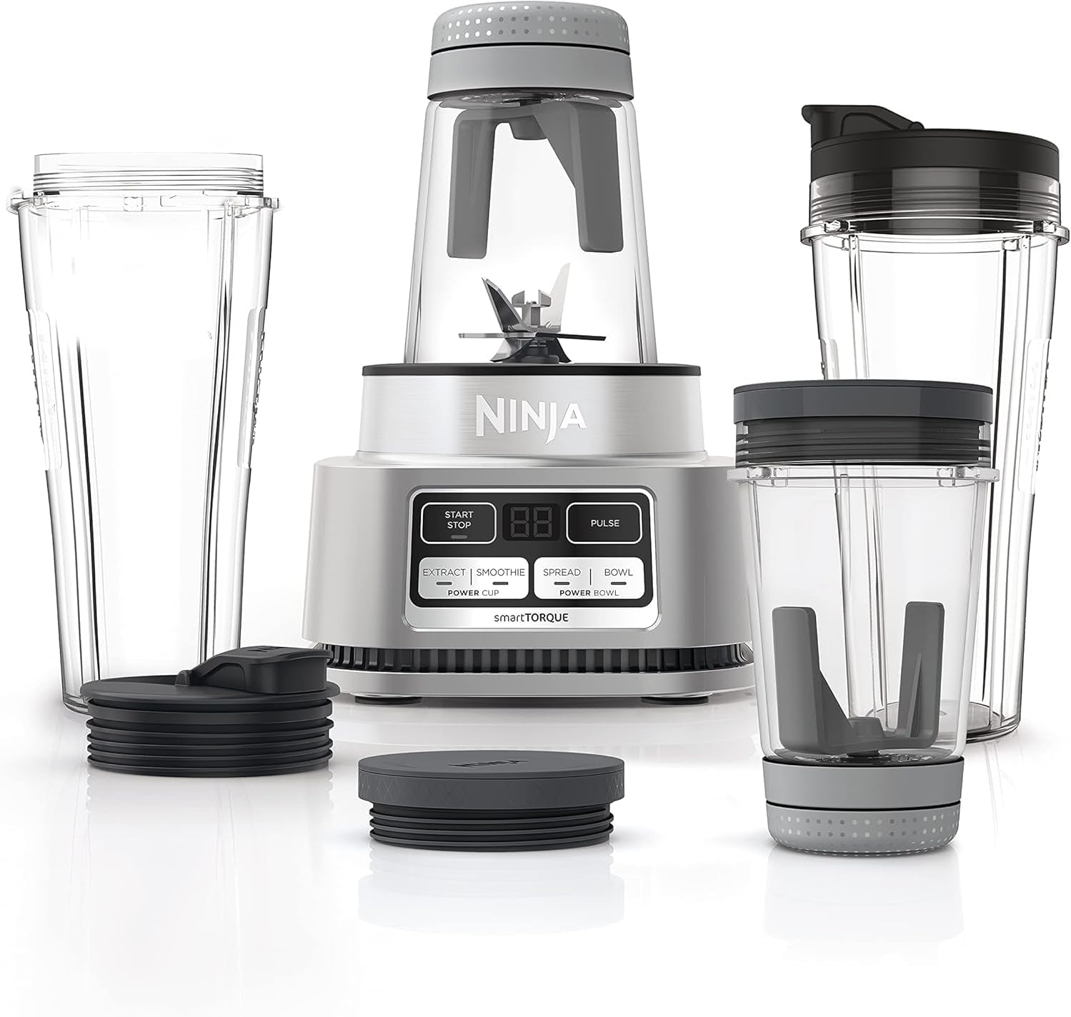 Ninja Foodi Power Nutri Blender 2-in-1, 1100W, Blend Smoothie Bowls, Thick Spreads & Frozen Drinks, Automatic Programs, 700ml Cup & 400ml Bowl with Power Paddle, Silver, CB102ME, 2 Years Warranty. 2 APPLIANCES IN 1: Create thicker textures in the 400ml Power Nutri Bowl with a built-in Power Paddle, and blend drinks and dressings in the Power Nutri Cup. Dishwasher safe parts. MORE THAN SMOOTHIES: Create a variety of textures including spoon-thick smoothie bowls, spreads and nut butters, smooth drinks and dressings. NO STALLING, STIRRING OR SHAKING: Power through thick mixtures with Smart Torque 1100W motor. Twist the paddle as you blend in the bowl to keep stubborn ingredients moving. 4 AUTOMATIC PROGRAMS: Blend, Crush, Mix and PowerMix. Auto-iQ Technology does all the hard work for you, delivering the results you want at the touch of a button. INCLUDES: Ninja Power Nutri Blender 1100W, 400ml Bowl with Power Paddle, storage lid, 700ml Cup with spout lid, Hybrid Edge blades, Recipe Guide DIMENSIONS: H30 x W17 x D17cm. Weight: 2.08kg. 2-year guarantee upon registration with Ninja. 1100W motor powers through the thickest mixtures – no stalling, no stirring, no shaking Blend smoothies, drinks & dressings Create super-thick smoothie bowls with built-in Power Paddle 4 automatic programs – Blend, Crush, Mix, PowerMix From the manufacturer