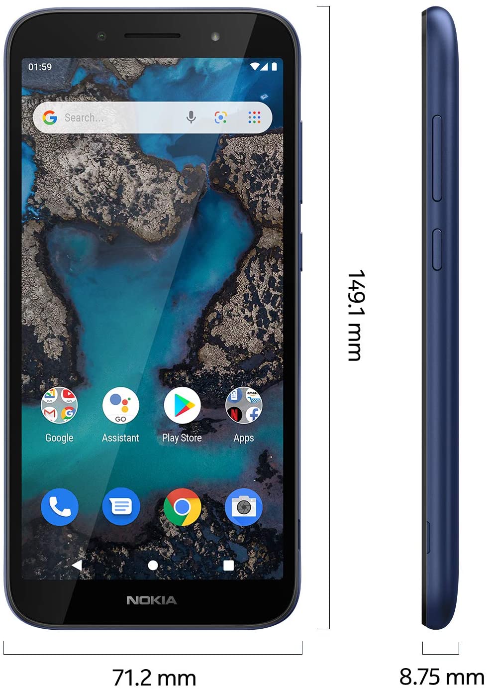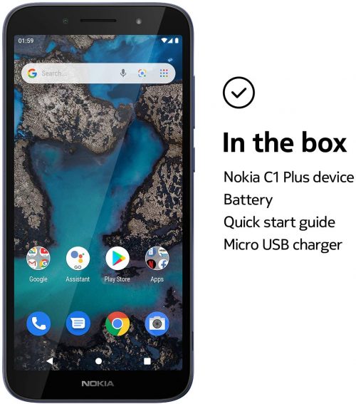 Nokia C1 Plus Smartphone with a 5.45” HD+ Screen, Powerful Front Flash, face Unlock, All-Day Battery, Android 10 (Go Edition) and 4G in Blue