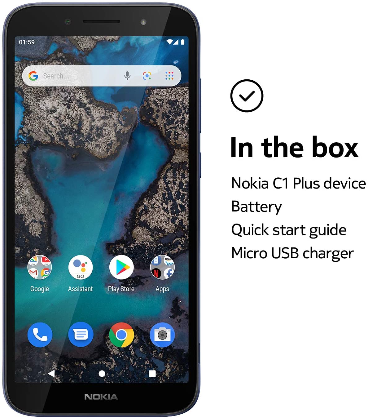 Take the leap with Nokia C1 Plus. The crisp 5.45” HD+ screen makes your apps and texts pop – not to mention the photos and videos you take, thanks to HDR imaging and powerful front-facing flash. Enjoy style that lasts with a sleek, solid body. All-day battery gives you hours to explore everything Android 10 (Go edition) has to offer, along with the very latest OS features. Besides protecting your data and saving your storage, it brings a lighter, faster smartphone experience – and with speedy 4G, there’s even more to look forward to. Key Features: Take streaming, browsing and gaming to the next level with 5.45 inches of HD+ clarity Snap photos that shine with the front and rear cameras plus powerful front-facing flash Keep your phone safe with face unlock – simply open with a quick glance Discover a phone that lasts, featuring an all-day battery and tough polycarbonate shell Experience greater security, more storage and monthly data saving with Android 10 (Go edition)