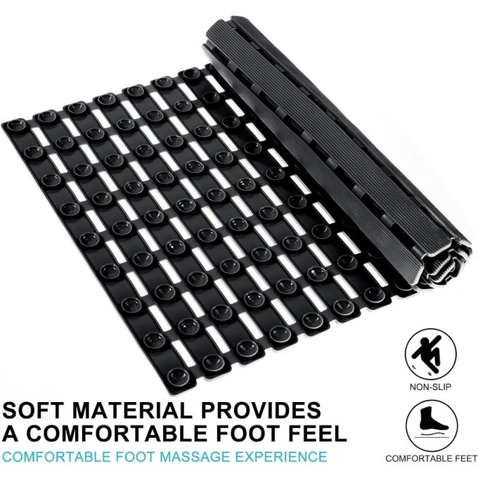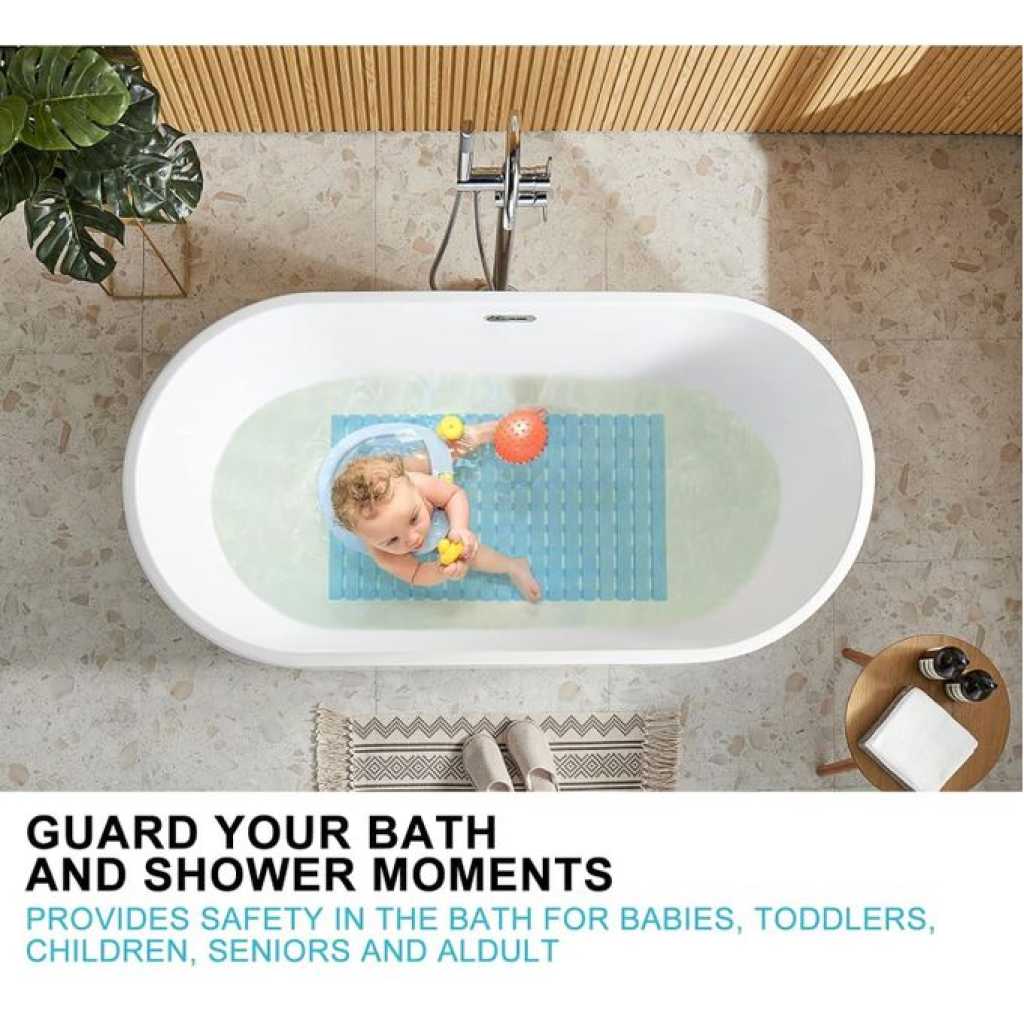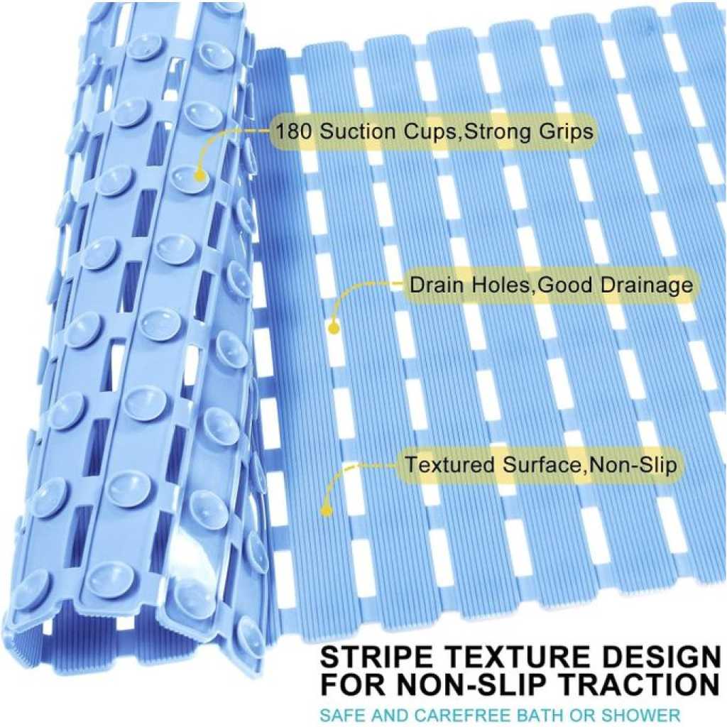 Key Features: Non Slip Floor Bath Mat Bathtub Shower Mat, Machine Washable Bathtub Mat with Suction Cups and Drain Holes, Soft Bathroom Accessories, 27.5×15.7 Inch- Multicolor SUPER NON-SLIP: 180 large suction cups have strong grip and effectively keep the bathroom mat on the bathtub or shower floor. The striped textured surface design also has good non-skid performance. QUICK DRAIN: The slotted design of the large rectangular drainage holes and the striped textured surface allow water and suds to drain quickly instead of collecting around the foot, keeping the shower mat clean. SAFE AND DURABLE: Made of premium PVC material, whether it is used in the bath tub or shower, enjoy a comfortable, soft-on-feet experience. Especially to protect the safe bathing of babies, children, toddlers and the elderly. MACHINE WASHABLE: The bath mat is easy to clean, just machine wash and air dry, you can hang the bathmat on the side of the bathtub or on the bathroom doorknob to air dry the mat easily. VERSATILE: This bath mat is 27.5 X 15.7 inches in size, providing excellent coverage, and can be DIY spliced by cutting according to the size of your bathtub or shower floor. Add a practical touch to your bathroom accessories with this stylish and elegant bathtub mat — great for homes, dorms, hotel or gyms! CAUTION: Clean and wet the surface before use. Place the non-slip mat in place, press down to make the suction cup grasp the surface and hold it, and ensure that the mat is firmly in place. The bathtub mat can only be attached to a clean and smooth surface.
