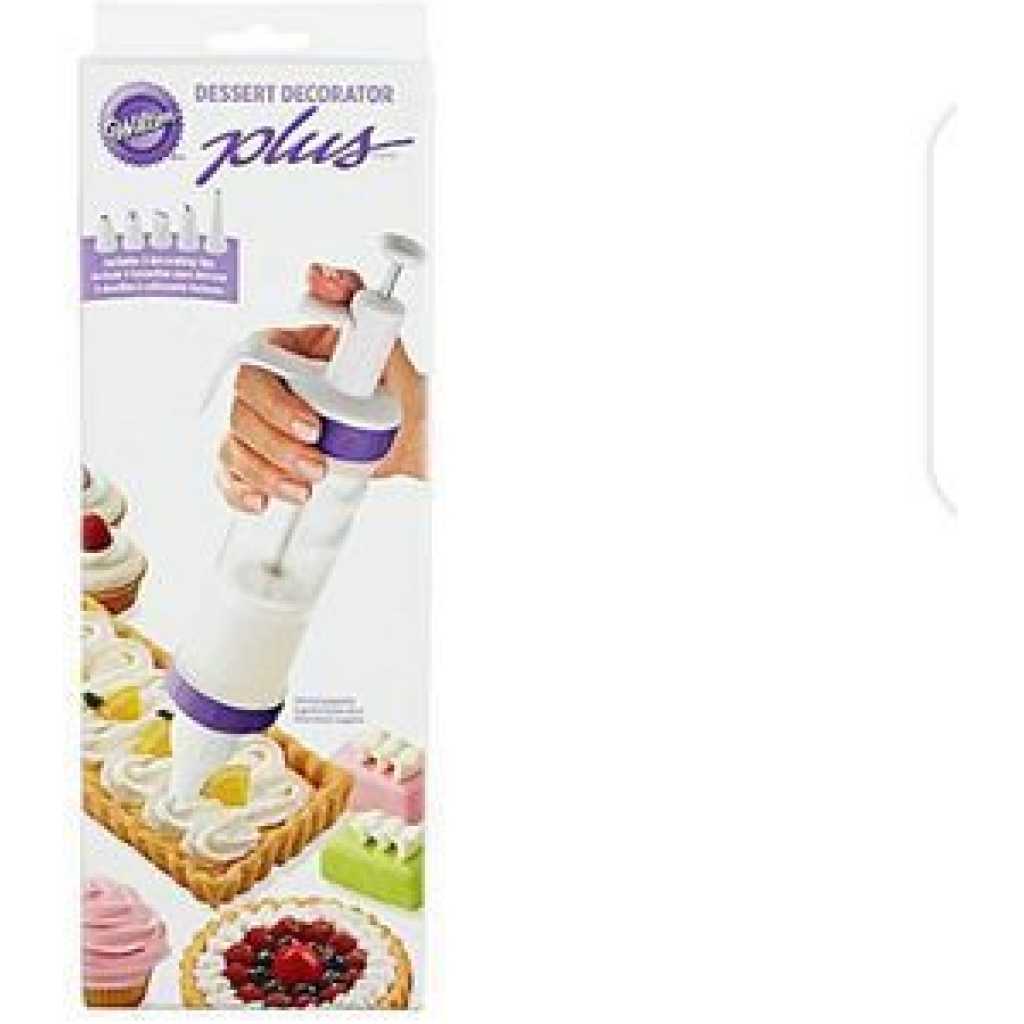 None Dessert Decorator Plus Cake Decorating/Icing Tool Set Multi Color This decorator is a great way to create icing shapes evenly. Handy cake-decorating tools make it easy to create stars, flowers, rosettes, dots, leaves, and other icing designs. It includes 4 decorating tips, a fill tip, and 2 couplers and can be used with most standard Wilton tips. Key Features: None Dessert Decorator Plus Cake Decorating/Icing Tool Set Multi Color Cookies and cake creativity is made easy Metal and plastic 11 inches diameter Cylinder, bottom ring, tips and couplers Easy to use