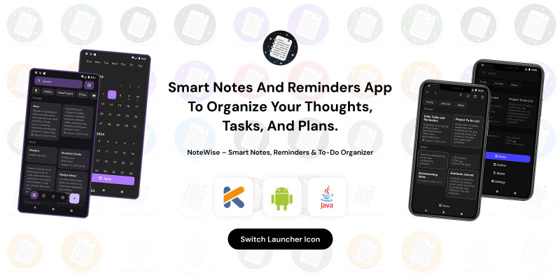 NoteWise – Android App Source Code. Smart notes and reminders app to organize your thoughts, tasks, and plans.