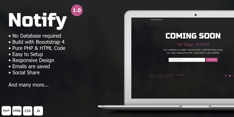 Notify - Website Landing Webpage PHP. Notify- Website Landing Webpage is a easy solution for to create your own Landing Page.