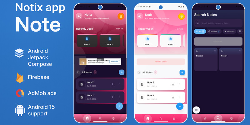 Notix - Notes App with Firebase For Android. Modern notes app with Firebase sync, AdMob monetization, clean UI & offline support. Ready to customize and publish on Google