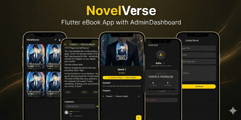 NovelVerse Flutter eBook App with Admin Dashboard. Complete Flutter eBook app with Firebase. Includes In-App Admin Dashboard, Comments, Dark Mode, and User Ranks.