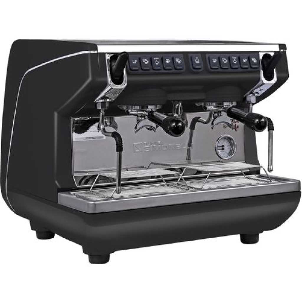 Key Features: Nuova Simonelli Appia II Volumetric 2 Group Coffee Espresso Machine With Free Installation, Espresso Starter Kit, And Water Filter System- Black . Body material: steel The possibility of making espresso, cappuccino, americano, and latte Equipped with an automatic shutdown system Has a water filter Using the cup heating system It has a single cup, two cups, and a steam button. Cool Touch Wands Push Pull Steam Manual Dosing only Soft Infusion System Bar Pump Gauge Two Group, Automatic Model, Heavy-Duty Commercial Construction, Volumetric dosing, Automatic boiler fill, Boiler Capacity: 11 litres, Lifetime Warranty on Boiler