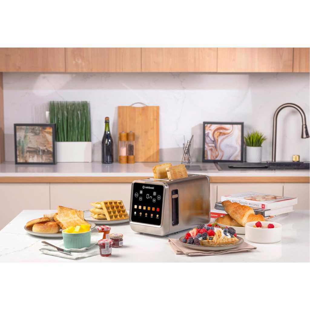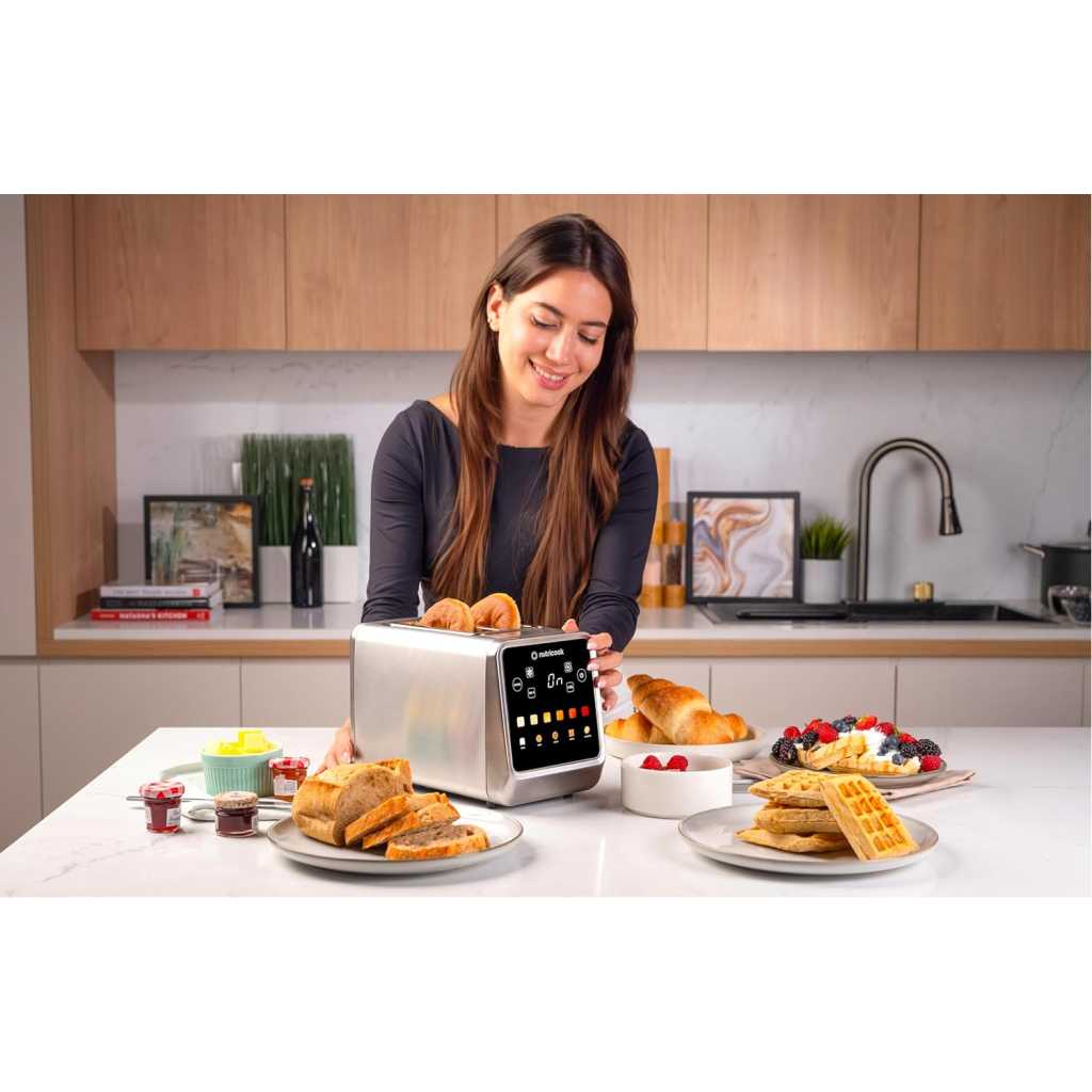 Nutricook 2-Slice Smart Toaster with 6 Browning Levels, Auto Shut-Off, Reheat, Defrost, Bun Warmer & Favorite Button | Bagel, Waffle, Pastry, Muffin Modes | Stainless Steel, 850W, 2-Year Warranty, TS201. The VERSATILE Toaster offers specialized settings for bread, bagels, waffles, pastries, and English muffins, ensuring perfectly toasted results every time. Enjoy customized toasting for all your favourite breakfast items TOUCHSCREEN DISPLAY – The intuitive touchscreen display lets you effortlessly select functions and settings with a simple touch, offering a seamless and user-friendly experience for precise control over your toasting preferences DEFROST – The Defrost feature quickly thaws and perfectly toasts frozen bread and waffles, ensuring warm, crispy results every time without compromising texture or flavour. Ideal for convenient, frozen-toasted meals REHEAT – The Reheat feature warms up your toast to crispy perfection without overbrowning, ensuring it stays delicious and fresh, even if you’re reheating. Enjoy perfectly reheated toast every time FAVORITE FUNCTION – The Favourite Function lets you save your preferred toasting settings for quick, one-touch access, making it easy to enjoy your perfect toast every time with minimal effort