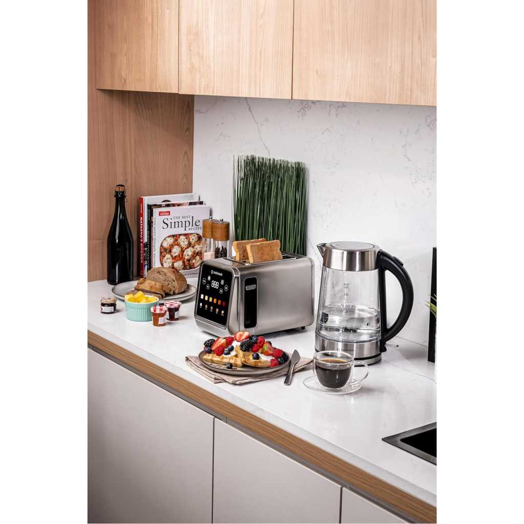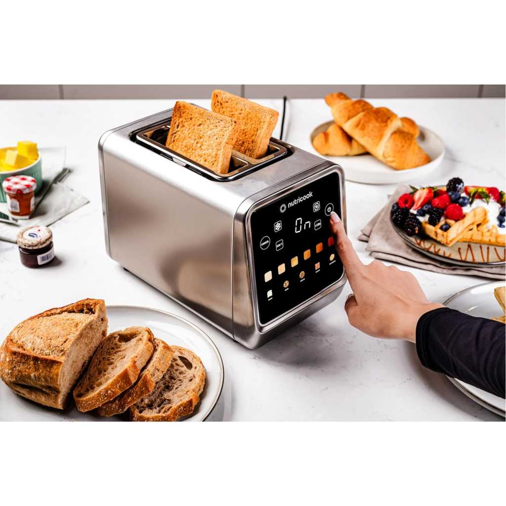 Key Features: Nutricook 2-Slice Smart Toaster with 6 Browning Levels, Auto Shut-Off, Reheat, Defrost, Bun Warmer & Favorite Button | Bagel, Waffle, Pastry, Muffin Modes | Stainless Steel, 850W, 2-Year Warranty, TS201. The VERSATILE Toaster offers specialized settings for bread, bagels, waffles, pastries, and English muffins, ensuring perfectly toasted results every time. Enjoy customized toasting for all your favourite breakfast items TOUCHSCREEN DISPLAY – The intuitive touchscreen display lets you effortlessly select functions and settings with a simple touch, offering a seamless and user-friendly experience for precise control over your toasting preferences DEFROST – The Defrost feature quickly thaws and perfectly toasts frozen bread and waffles, ensuring warm, crispy results every time without compromising texture or flavour. Ideal for convenient, frozen-toasted meals REHEAT – The Reheat feature warms up your toast to crispy perfection without overbrowning, ensuring it stays delicious and fresh, even if you’re reheating. Enjoy perfectly reheated toast every time FAVORITE FUNCTION – The Favourite Function lets you save your preferred toasting settings for quick, one-touch access, making it easy to enjoy your perfect toast every time with minimal effort