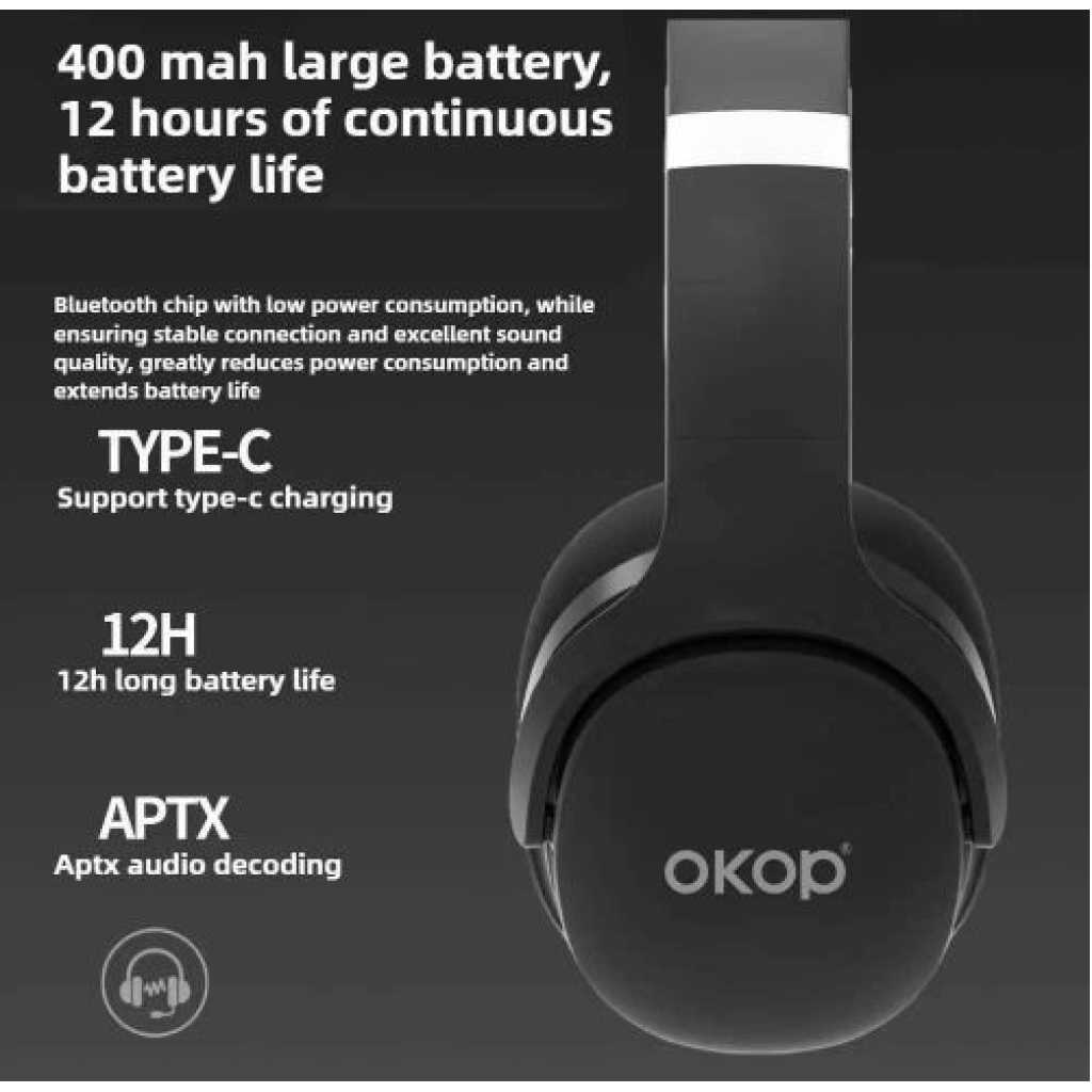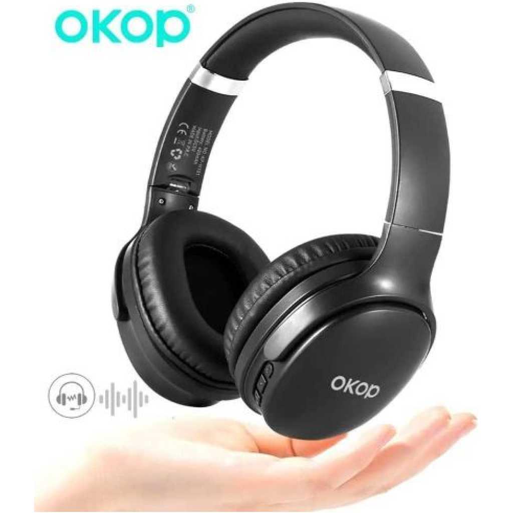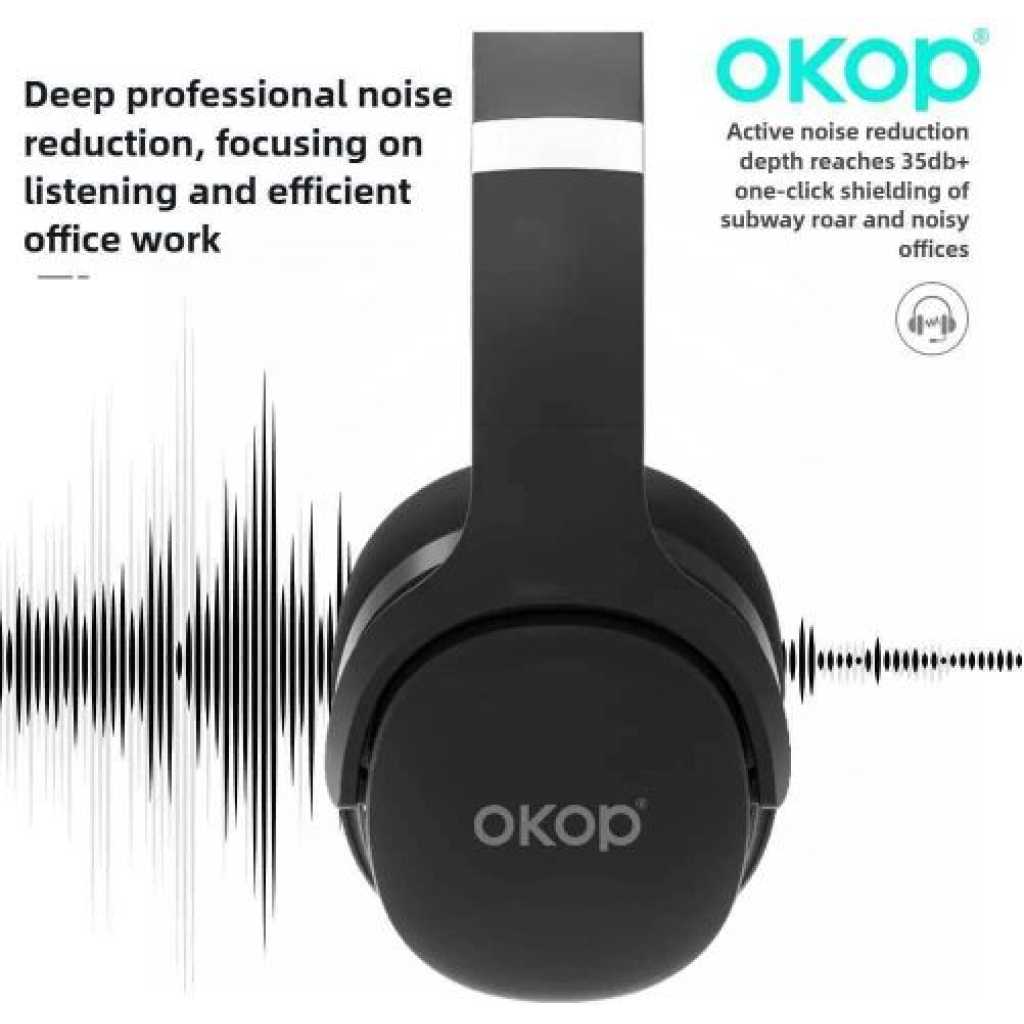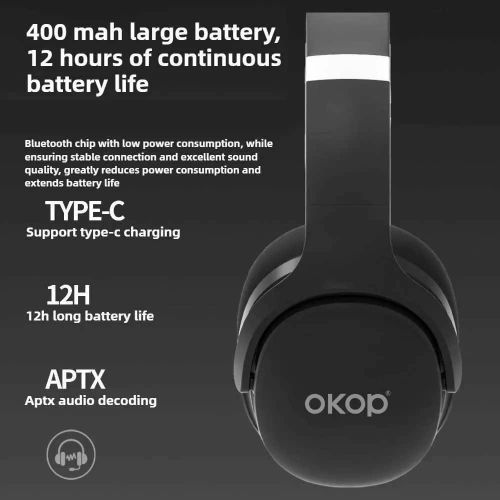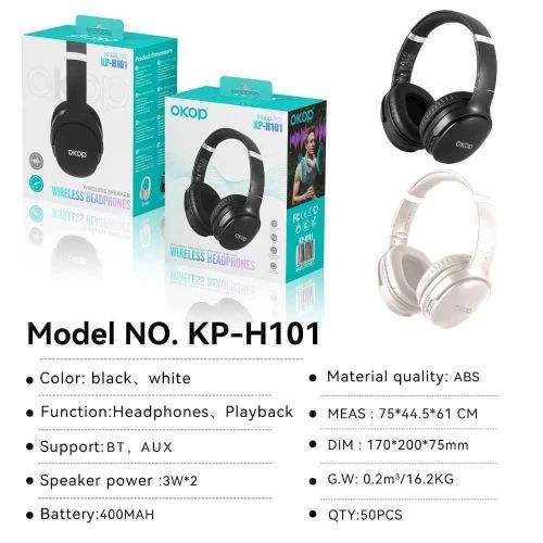 OKOP KP-H101 Over-Ear Bluetooth Noise Cancelling Headphones: Premium Sound for Sports, Gaming, and Daily Use Elevate your audio experience with the OKOP KP-H101 Over-Ear Bluetooth Noise Cancelling Headphones, designed to deliver crystal-clear sound and unmatched comfort. Perfect for sports enthusiasts, gamers, and music lovers, these headphones combine advanced technology with a durable, sweat-resistant design to meet all your needs. Active Noise Cancellation Technology Immerse yourself in pure sound with advanced active noise cancellation (ANC) that blocks up to 90% of ambient noise. Whether commuting, working out, or gaming, the OKOP KP-H101 headphones ensure uninterrupted audio clarity, letting you focus on your music, calls, or in-game action. Sweat-Resistant & Waterproof Design Built for active lifestyles, these sports headphones feature an IPX5 waterproof rating to withstand sweat and light rain. The ergonomic over-ear design with soft memory-protein ear cushions provides a secure, comfortable fit during intense workouts or long gaming sessions. 50-Hour Extended Playtime & Fast Charging Enjoy up to 50 hours of continuous playtime on a single charge—ideal for travel, all-day use, or marathon gaming. A 10-minute quick charge via the USB-C port delivers 2 hours of playback, ensuring you’re never without your music. Low Latency Gaming Mode Switch to Gaming Mode for ultra-low latency (40ms), syncing audio seamlessly with on-screen action. The built-in high-sensitivity microphone enhances team communication, making these headphones a top choice for competitive gamers. Hi-Fi Sound & Dual Connectivity Equipped with 40mm dynamic drivers, the OKOP KP-H101 delivers deep bass, crisp highs, and balanced mids. Connect via Bluetooth 5.3 for stable, long-range wireless performance or use the included 3.5mm audio cable for wired listening. Multi-Device Compatibility & Foldable Design Easily pair with smartphones, tablets, PCs, and gaming consoles. The foldable, lightweight frame with adjustable headband ensures portability and personalized comfort for users of all ages. Package Includes – OKOP KP-H101 Headphones – USB-C Charging Cable – 3.5mm Audio Cable – Travel Case – User Manual Upgrade your audio gear with the OKOP KP-H101—the ultimate blend of style, durability, and performance. Perfect for sports, gaming, travel, or daily use, these noise-cancelling headphones offer premium features at an unbeatable value. Shop now and experience sound like never before! KP-H101 Wireless bluetooth headset Comfortable and ergonomic design Lightweight design: the lightweight body ensures comfortable, pressure-free wear for extended periods. adaptive headband+ skin-friendly earcups: designed to fit various head shapes, featuring protein leather/memory foam materials that are soft, breathable, and keep your ears cool even during long listening sessions 120 More suitable for the ear contour More comfortable More ergonomic design More convenient 300g light weight and no feeling to wear Longer lasting Designed for a comfortable fit, wear it for extended periods without fatigue 400 mah large battery, 12 hours of continuous battery life Bluetooth chip with low power consumption, while ensuring stable connection and excellent sound quality, greatly reduces power consumption and extends battery life External speaker function allows immersive experience without wearing it Available 180Reversibleheadphone jack,external speaker function Deep professional noise reduction, focusing on listening and efficient office work Active noise reduction depth reaches 35db+ one-click shielding of subway roar and noisy offices Product specifications KP-H101 Product size: 17*20*7.5cm Packing size:167.5*88*204mm Rated output (speaker mode): 3w*2 (class d) Rated output (headphone mode): 50omw*2(class ab) Speaker measurement: 4q, 3w, @40mm Signal-to-noise ratio (headphones): more than 90db Signal-to-noise ratio (speaker): more than 95db Total harmonic distortion (speaker): less than 3% Total harmonic distortion (headphones): less than 1% Playing time (speaker): about 3 hours Playing time (headphones): about 12 hours Battery:400 mah Product packaging