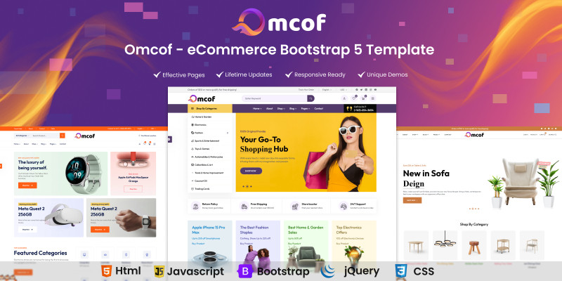 Omcof - eCommerce Bootstrap 5 Template. Omcof is a modern, responsive eCommerce Bootstrap 5 template with sleek design, customizable features, and mobile-friendly layout.