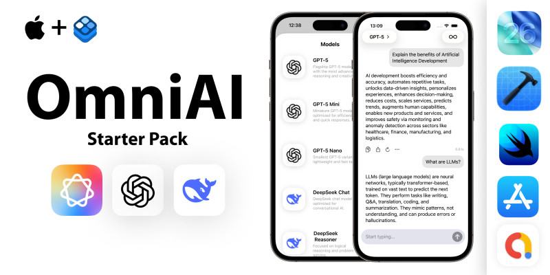 OmniAI Starter iOS ChatGPT GPT-5 AI Native SwiftUI. Chat App | ChatGPT + DeepSeek + Apple Intelligence