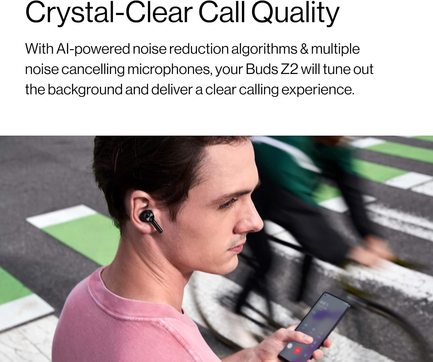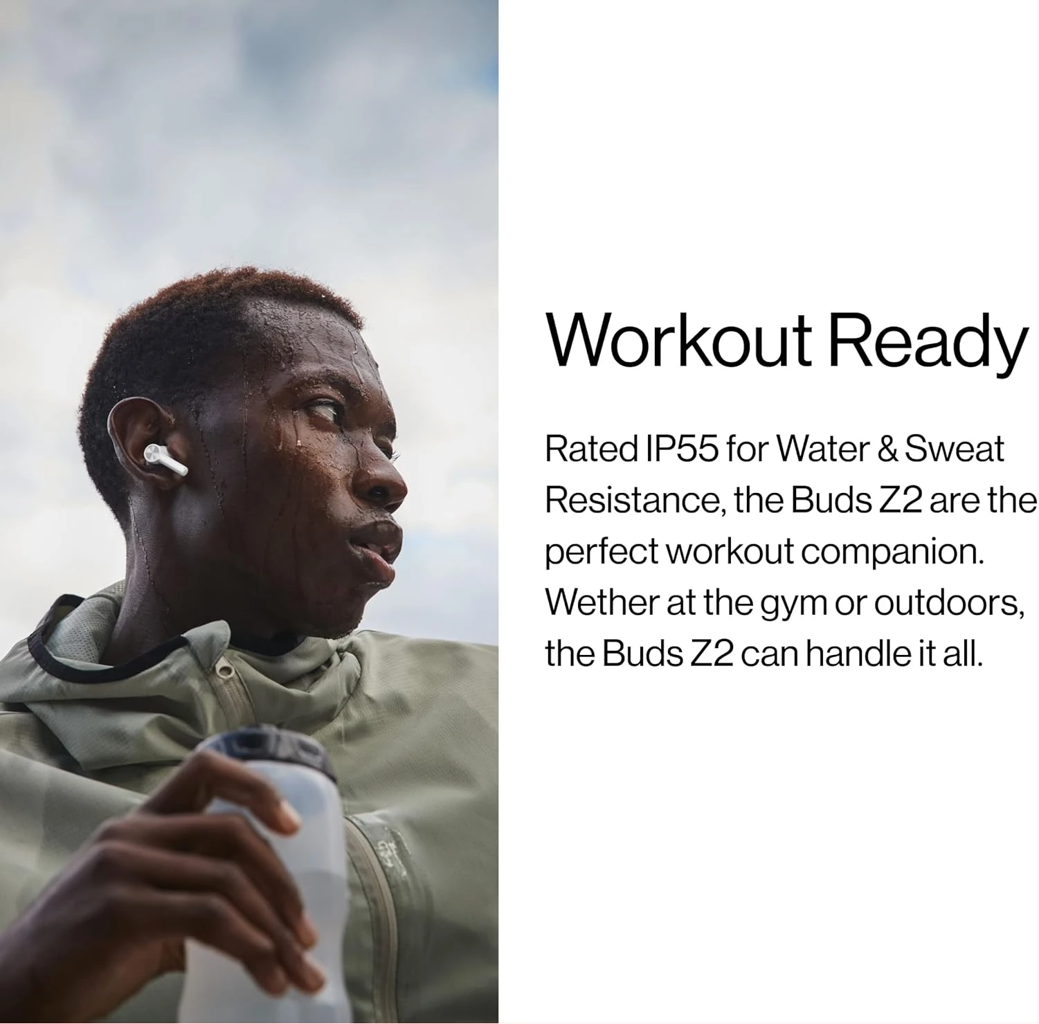 Key Features: [Active Noise Cancellation] Three mics on each bud detect and analyze ambient sound in your environment. Shake it up with noise-cancelling counter-frequencies (up to 40 dB noise reduction) to reduce wind and ambient noise. Hear your world in breathtaking clarity with Transparency Mode.Note : If the size of the earbud tips does not match the size of your ear canals or the headset is not worn properly in your ears, you may not obtain the correct sound qualities or call performance. Change the earbud tips to ones that fit more snugly in your ear [Superior Audio Experience] Acoustically tuned for bigger, bolder beats with razor-sharp treble, with Dolby Atmos support, it’s time to bring your party wherever you go. [Play Time Never Ends] With a monster battery life up to 38 hours, power your party all day and night – and all day again. With Dash Charge, a 10-minute charge powers your music for 5 hours. [Fast and Smooth Pairing] Sync to your Android smartphone as soon as you open the charging case – it’s that fast. [Calling Loud and Clear] AI powered noise reduction algorithms, noise-reducing microphones, and an elegant design all combine to enable crystal-clear calls. [All-Go in All-Weather] Rated IP55 for water and sweat resistance, the OnePlus Buds Z2 are perfect for outdoors and the gym.