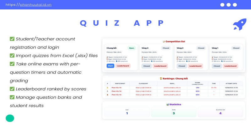 Online Quiz – Per-Question Timer. Online Quiz – Per-Question Timer - Leaderboard - Excel Question Import